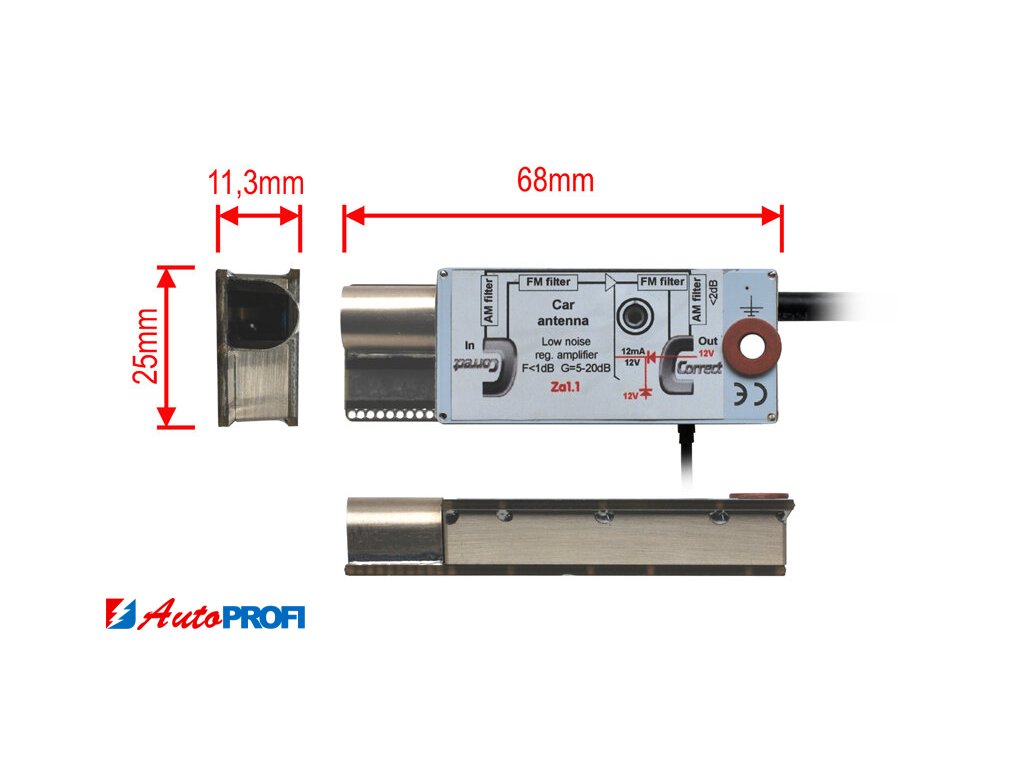 Zesilovač je určený pro snížení šumu a rušení při poslechu slabých stanic. Zvýšení stereofonního efektu, zlepšení čistoty reprodukce a zvýraznění vysokých tónů. Minimalizuje kolísáním signálu FM vysílání během jízdy.