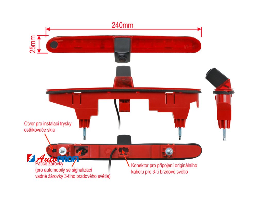 Kamera je umístěna ve 3-tím brzdovém světle umístěném zadních dveřích automobilu.