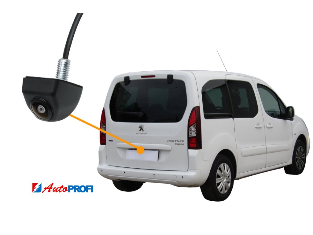 CMOS AHD parkovací kamera instalovaná v liště na zadních dveřích mezi světla pro osvětlení registrační značky.
