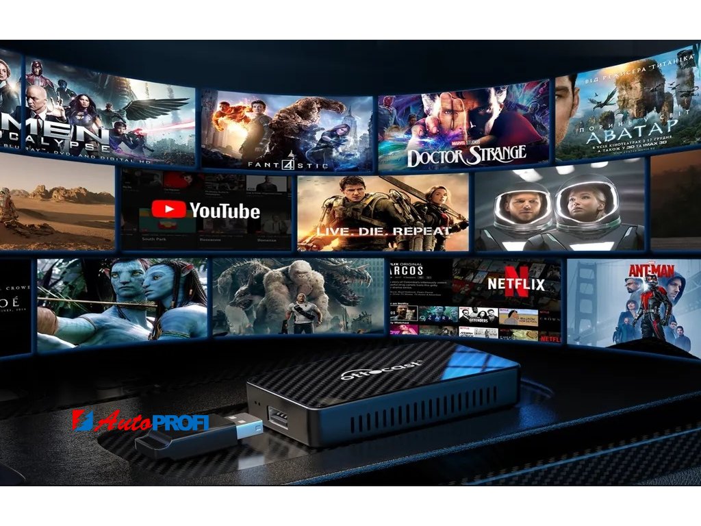 Tento adaptér umožňuje přehrávání nejen hudby, ale i videí a filmů. Můžete si dopřát streamování z aplikací jako Netflix, Youtube či IPTV, což je aplikace pro televizní vysílání. Je možné také přehrávání offline videí z Vašeho USB disku.