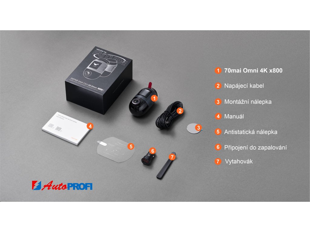 Palubní kamera 70mai Dash Cam Omni 4K X800 přináší revoluční řešení s neuvěřitelným 360° záběrem, díky kterému budete mít dokonalý přehled o dění kolem vašeho vozu. Nabízí výjimečně ostrý obraz, působivý kontrast a zároveň díky svým kompaktním rozměrům nijak nenarušuje výhled z vozidla. O vysokou kvalitu záznamu se starají pokročilé technologie 70mai Lumi Vision, 70mai Night Owl Vision a MaiColor Vivid+ Solution, které společně zajišťují dokonale ostrý a jasný obraz v maximálním rozlišení až 4K a to i za zhoršených světelných podmínek. Pokud chcete využít naplno všechny pokročilé funkce kamery, jako je parkovací režim nebo živé sledování vozidla na dálku, doporučuje se dokoupení kabelového příslušenství 70mai Hardwire Kit UP04.