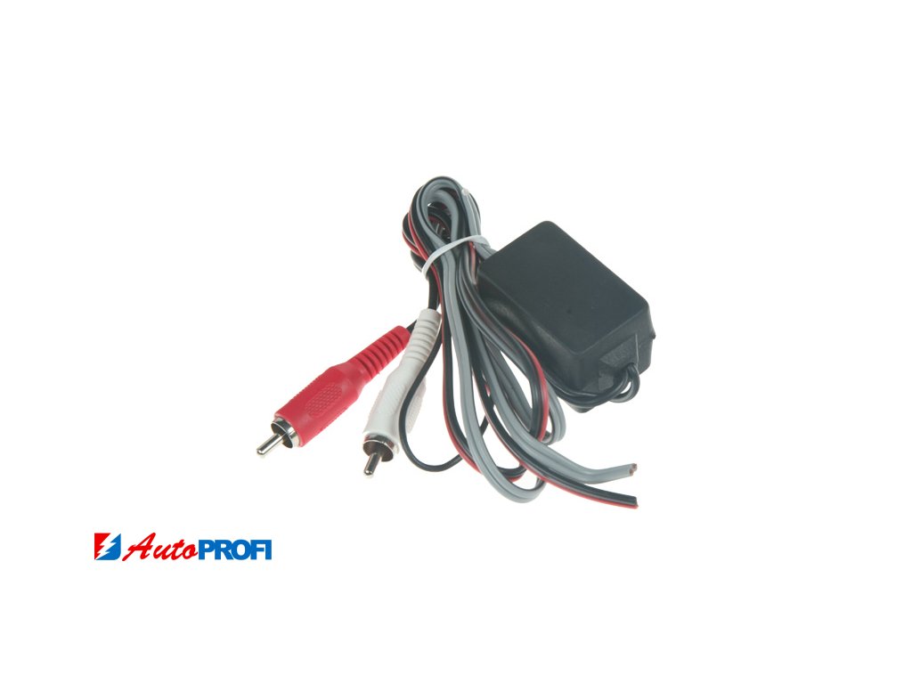 Dvoukanálový adaptér repro / CINCH samec s pevně nastaveným poměrem útlumu pro autorádia s výkonem do 10 W / kanál.