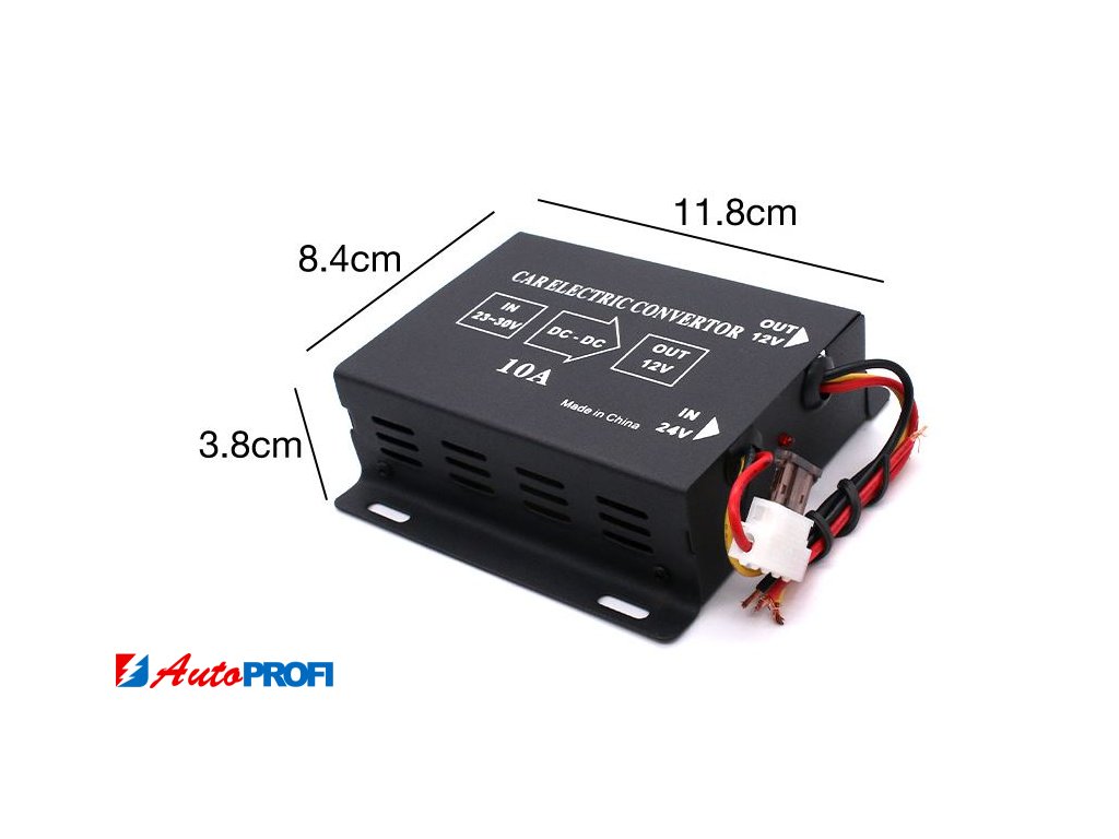 Měnič napětí umožňuje připojení 12 V spotřebičů (rádio, HF sada a pod.) do vozidla s rozvodem 24 V.