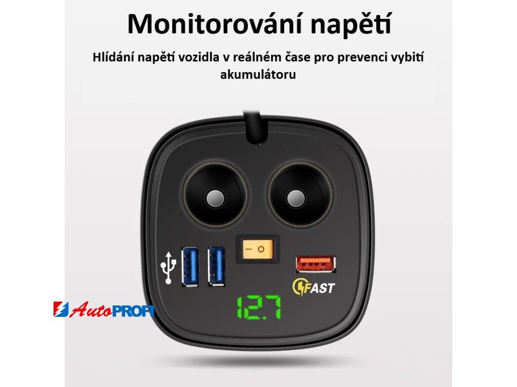 • 2x USB zásuvka + 1x USB QC3.0, 5V/9V (max. celkem 8A)