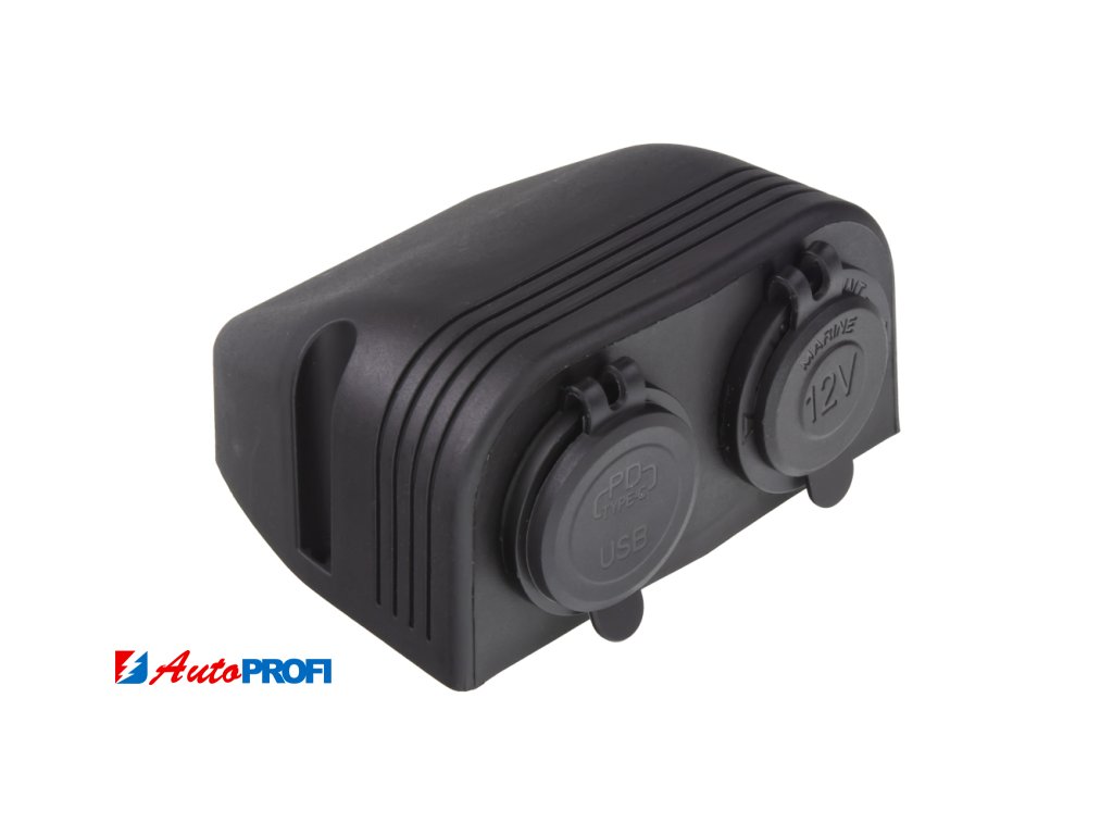 Dvojitá zásuvka s panelem 1x CL + 2x nabíječka USB voděodolná.