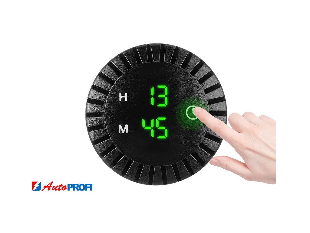 Postup nastavení času je následující: Dlouze stiskněte dotykové tlačítko (symbol hodin) na 3 sekundy, aby pozice hodin začala blikat, poté krátkým stiskem změníte hodnotu. Dlouhým stiskem (na 3 sekundy) přejdete na nastavení minut a krátkým stiskem tlačítka změníte hodnotu. Dlouhým stiskem (na 3 sekundy) nyní uložíte nastavení, displej přestane blikat.