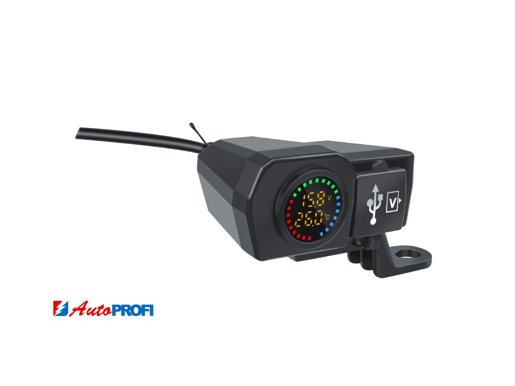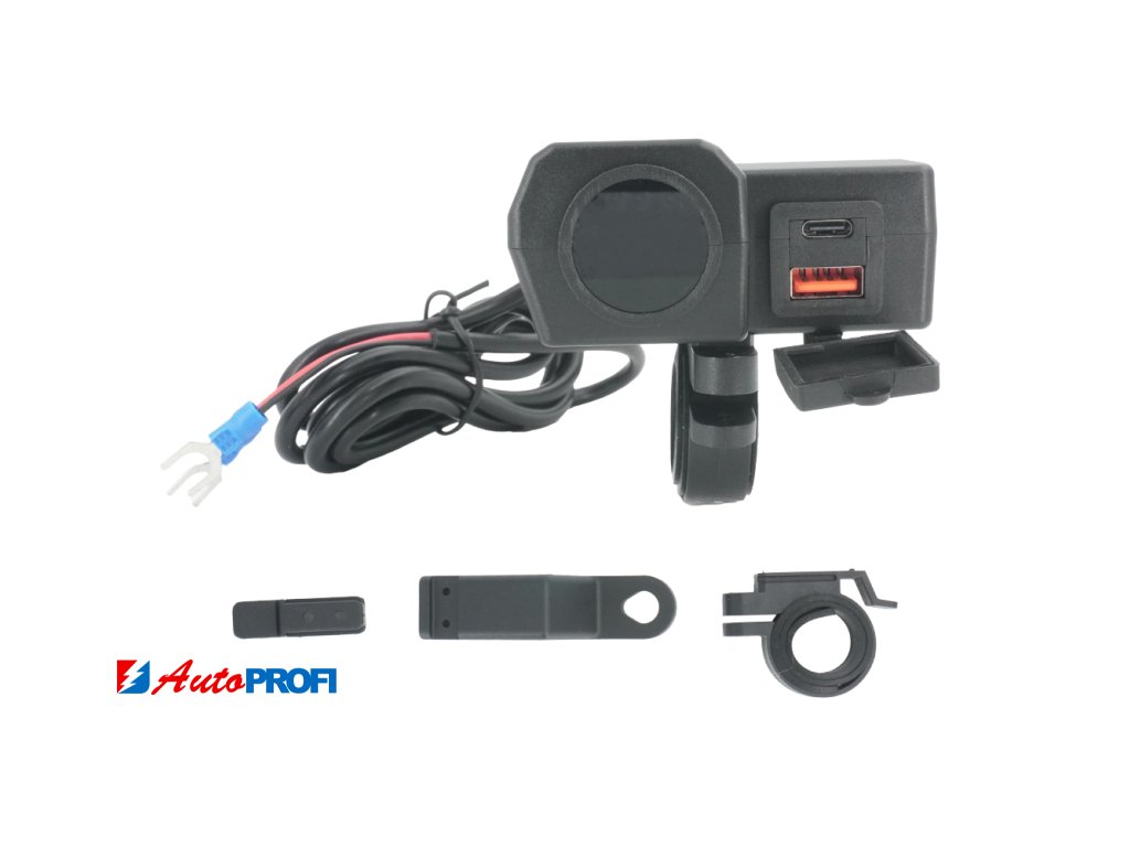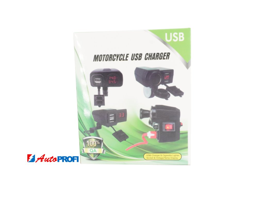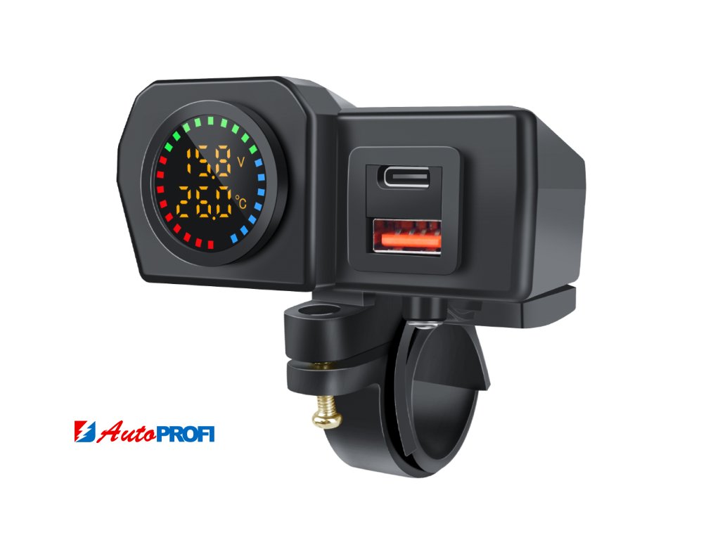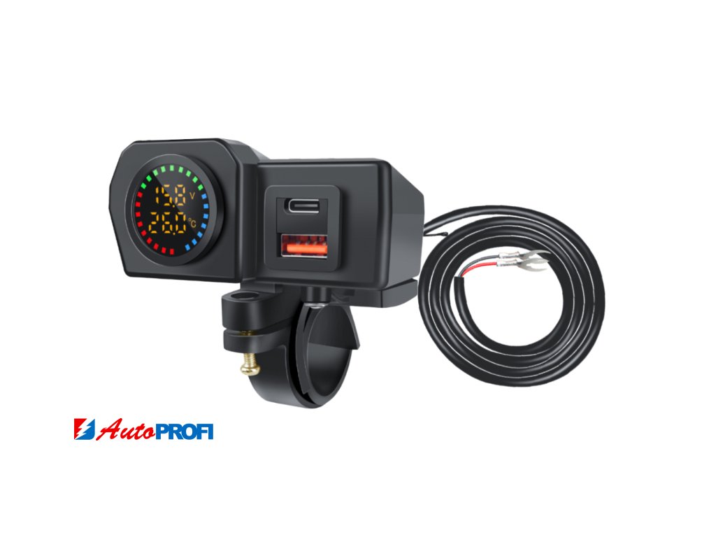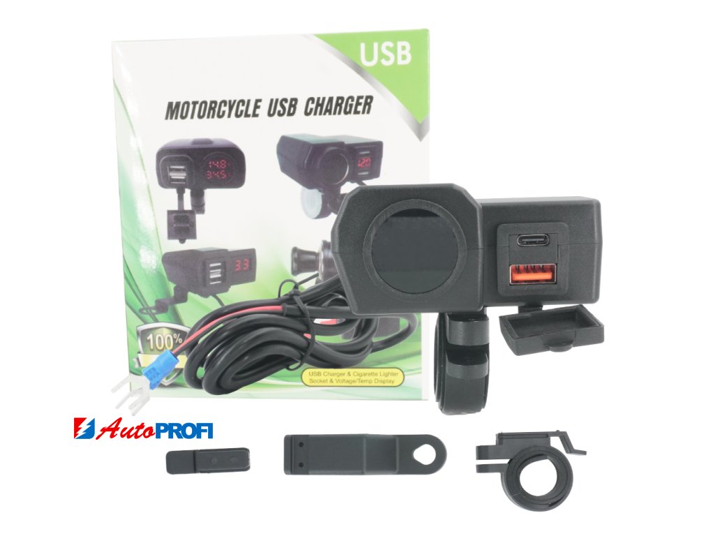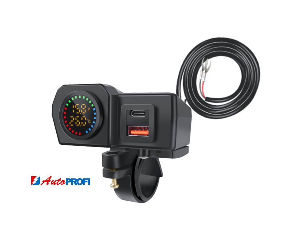 34709 USB+USB C nabíječka s voltmetrem/teploměrem na motocykl