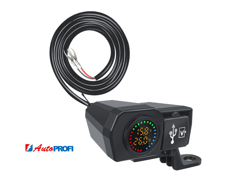 2x USB nabíječka s voltmetrem a teploměrem, vhodné např. pro motocykly, čtyřkolky a jiné.