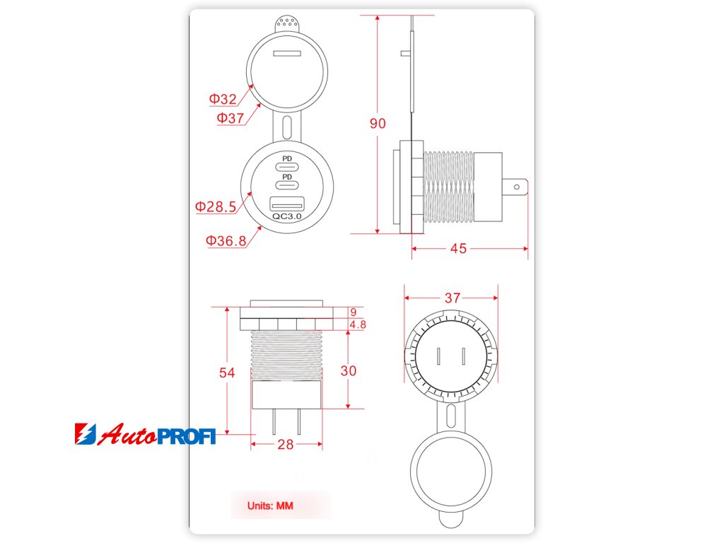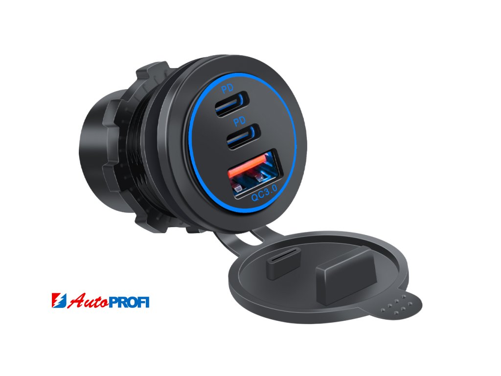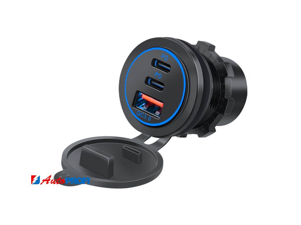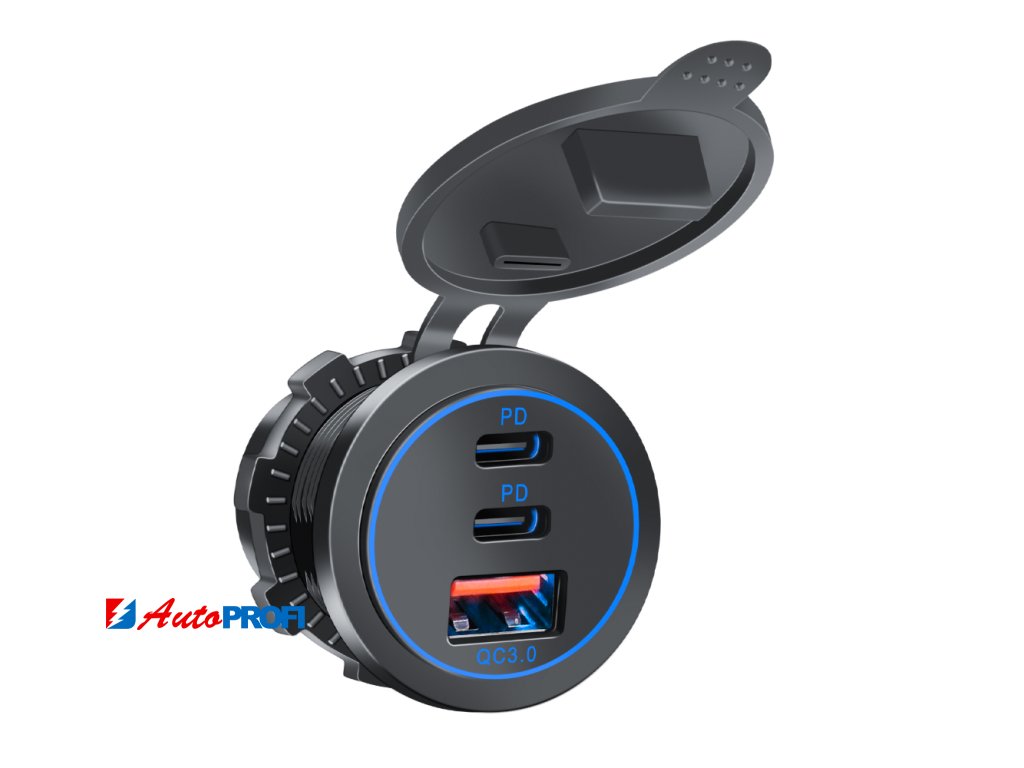 34720 USB QC3.0 + 2xUSB-C zásuvka 12/24V
