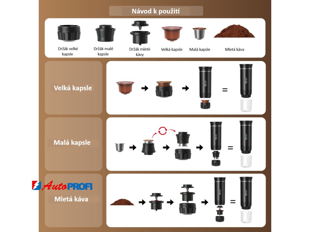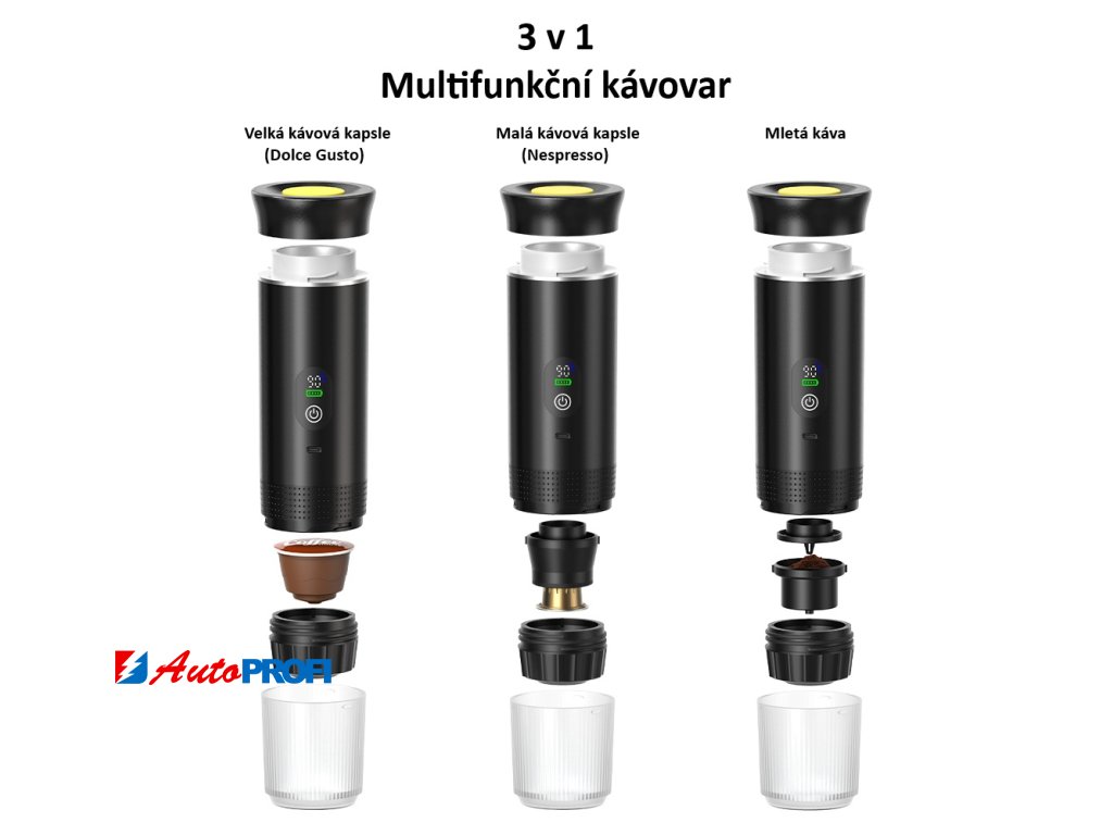 Přenosný espresso kávovar 3v1, dokonalé espresso kdykoliv a kdekoliv.
