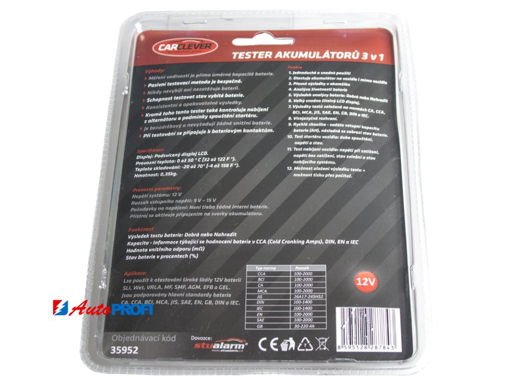 35952 Tester akumulátorů CARCLEVER 3v1 s možností tisku - poškozený prodejní obal