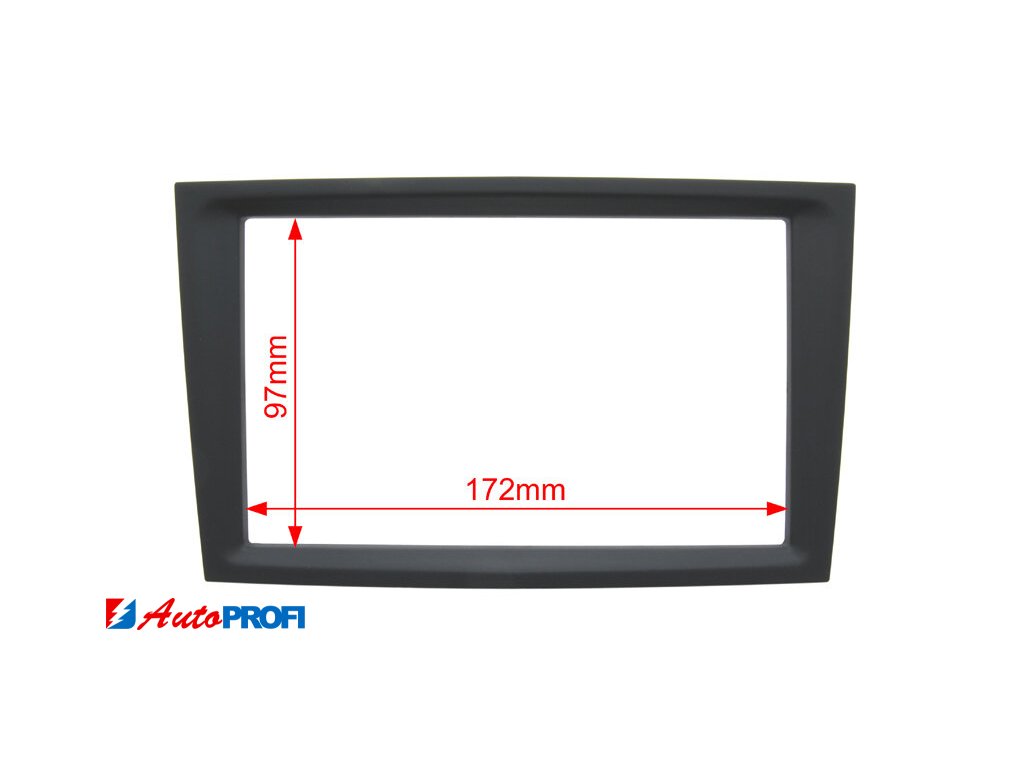 Rozměry otvoru odpovídají rozměrům čelního panelu 2DIN autorádií Kenwood, Alpine, Clarion, Pioneer, Macrom, Autosonik....