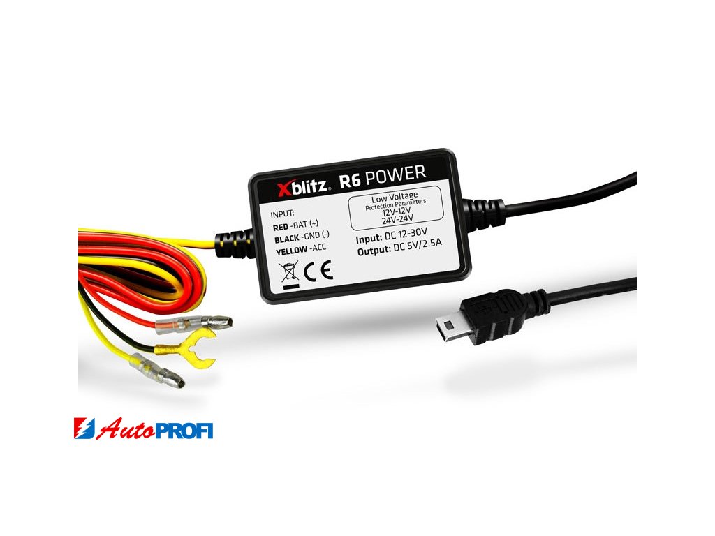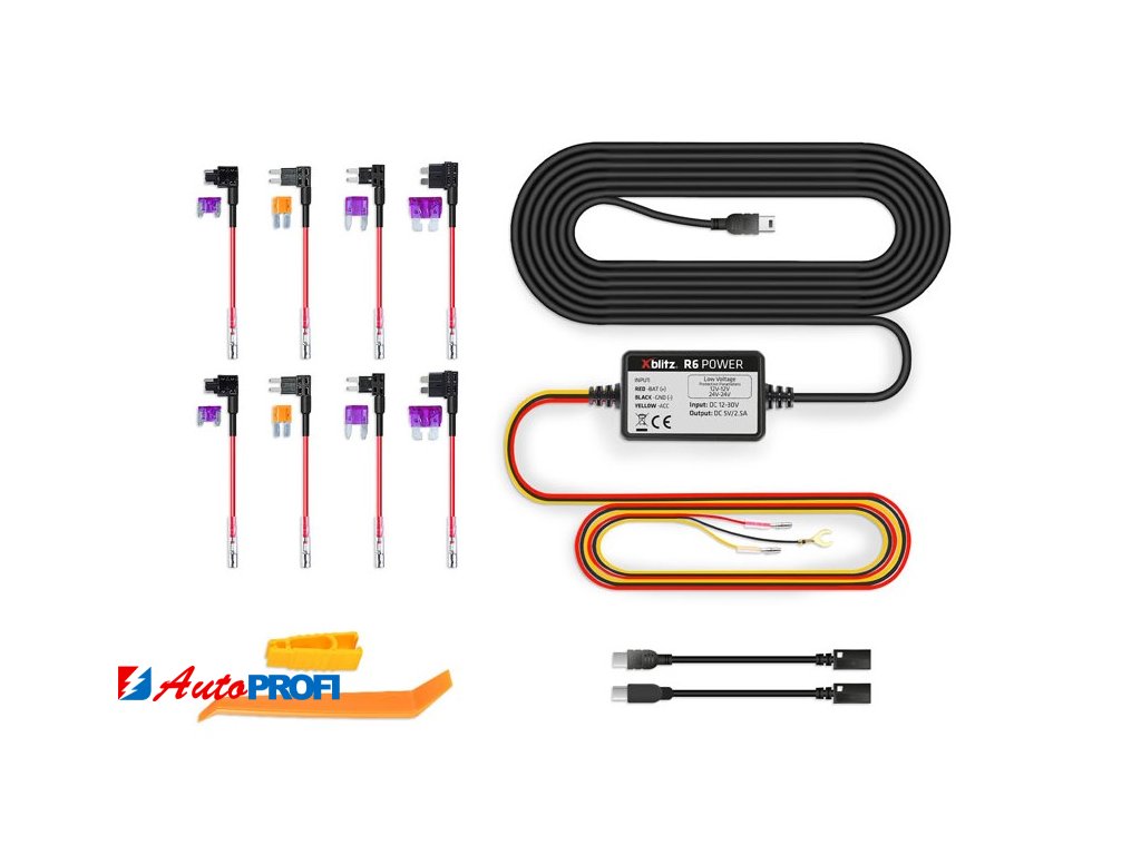 Univerzální napájecí kabel Xblitz R6 Power je příslušenství určené pro přidání skrytého napájení do pojistkové skříně. Jednoduše zapojíte rozbočovač do pojistkové skříně a schováte ho do palubní desky. Kabely pak vedete skrytými cestami přímo ke spotřebiči, například k palubní kameře Xblitz PRIME. Toto příslušenství je nezbytné pro fungování Xblitz kamer při vypnutém motoru, tedy v parkovacím režimu. Zdroj zároveň chrání baterii před vybitím.