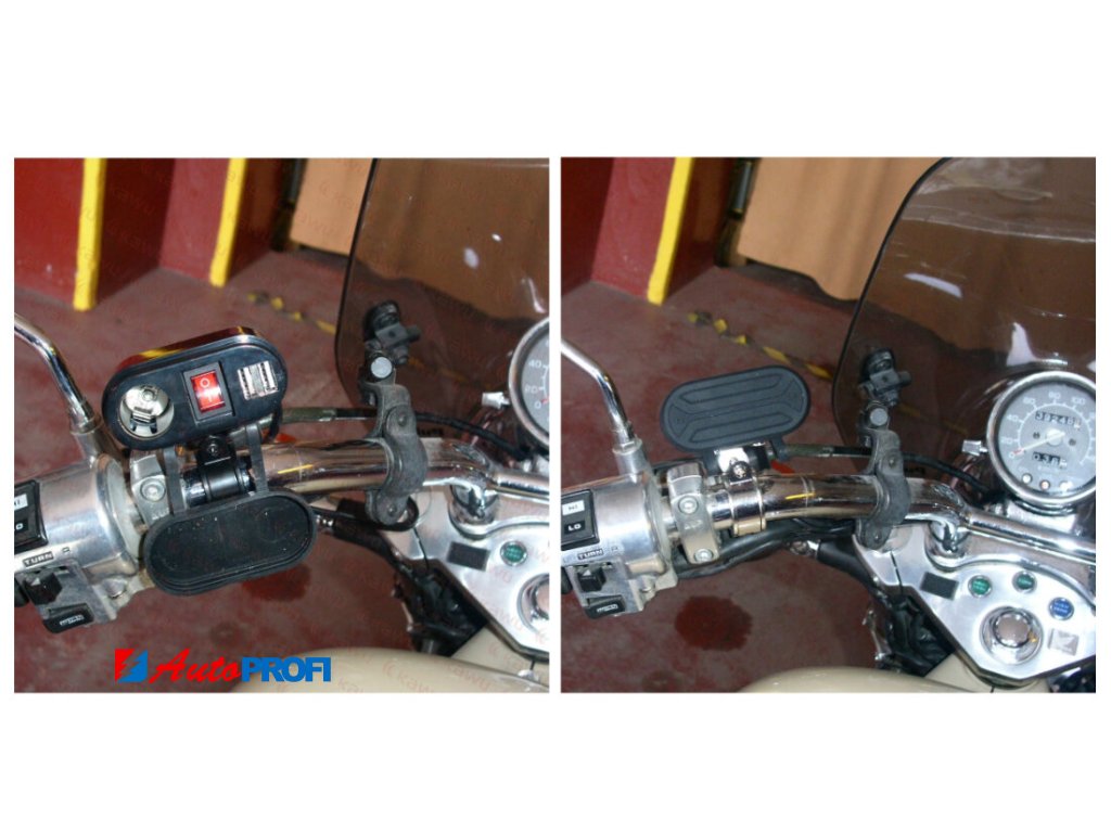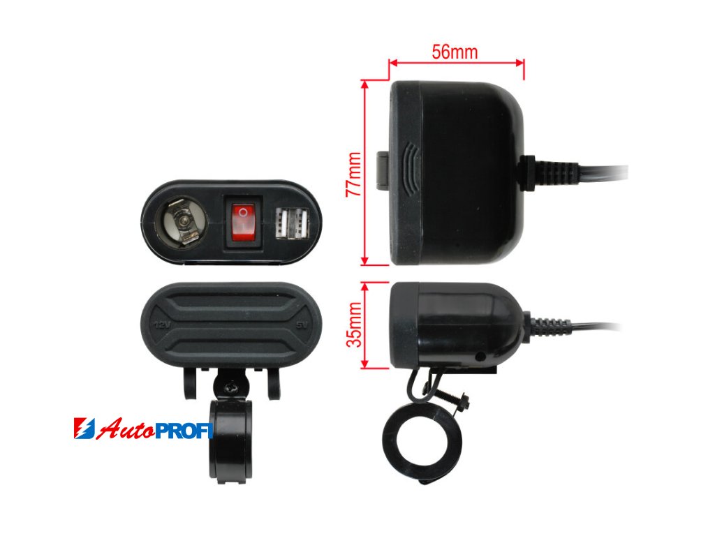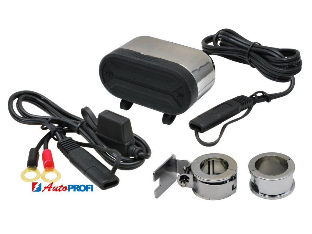 Voděodolný modul včetně kabelového svazku a pojistkového pouzdra určený pro upevnění na řídítka. Modul je vhodný pro nabíjení mobilního telefonu, navigace, interkomu a podobně.