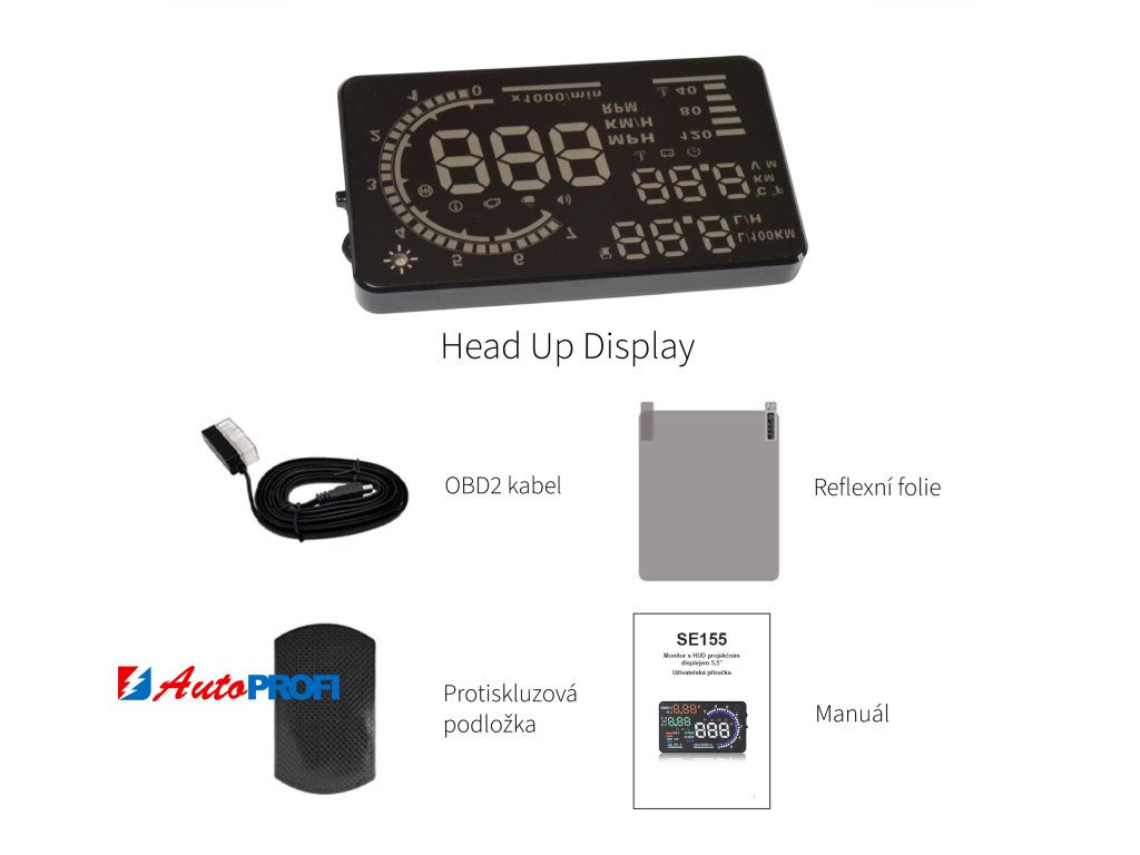 Zapojení Head-Up displeje je velmi jednoduché. Stačí najít port OBD2 ve vašem vozidle, připojit a umístit displej na palubní desku na protiskluzovou podložku zrcadlově ke sklu. Na čelní sklo se nalepí reflexní folie s nanotechnologií, která zajistí snazší čtení údajů a redukci slunečních odlesků za jízdy.