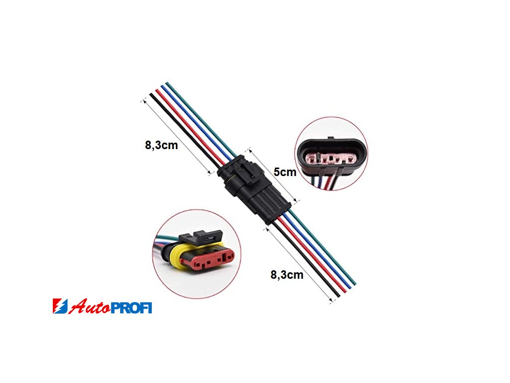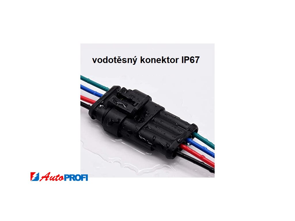 Vodotěsný konektor 4-vodičový. Zatížení konektoru 24V, 14A. Délka kabelů cm, balení 1ks.