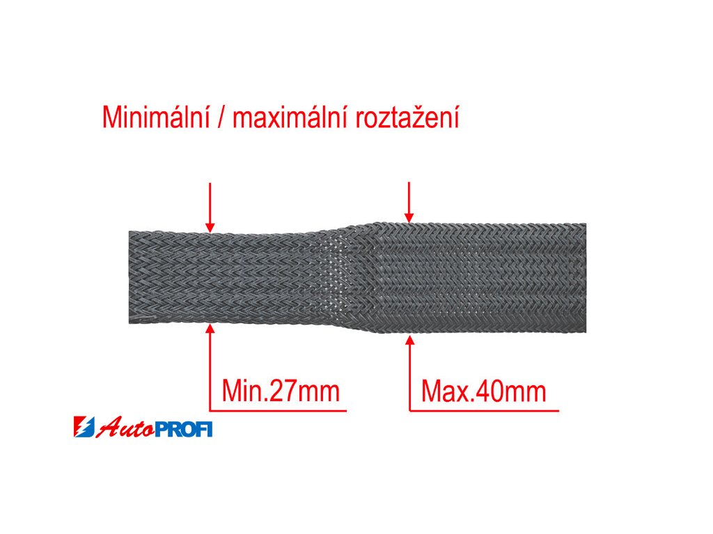 Ochranný oplet slouží pro mechanickou, flexibilní ochranu kabelových svazků. Vyrobené z polyesterových vláken spletených do kříže, které umožňují flexibilní roztažení a obepnutí nerovností v kabelovém vedení.