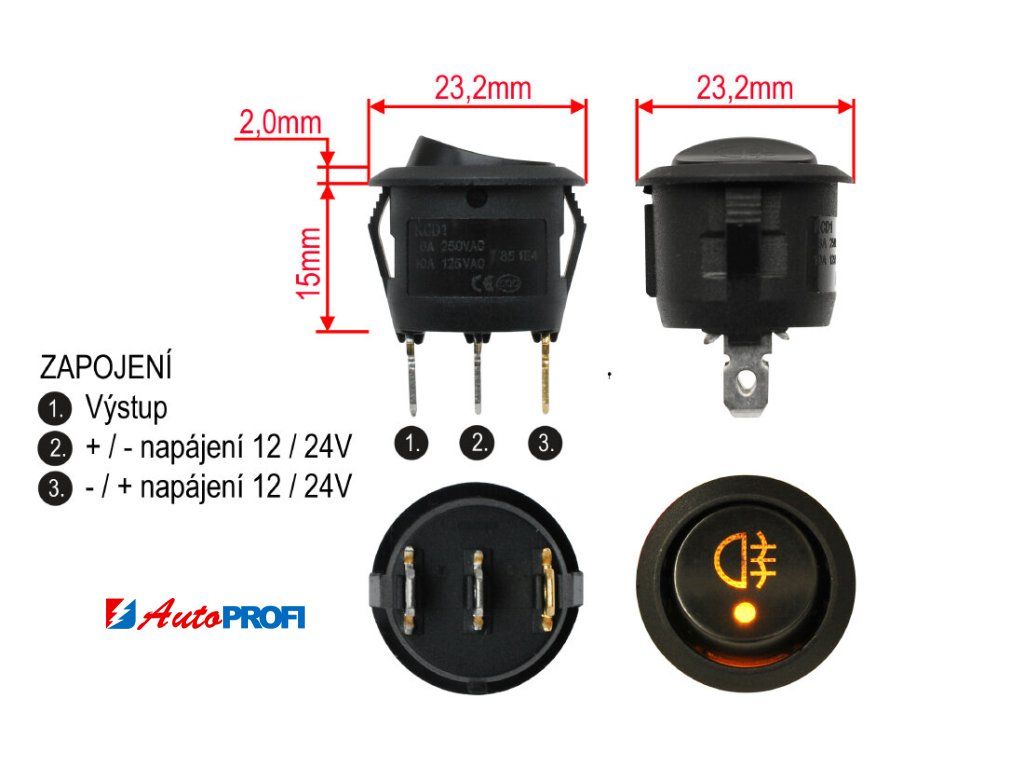 Kolébkový spínač mlhových světel do panelu s aretací 1-pólový spínací ON-OFF