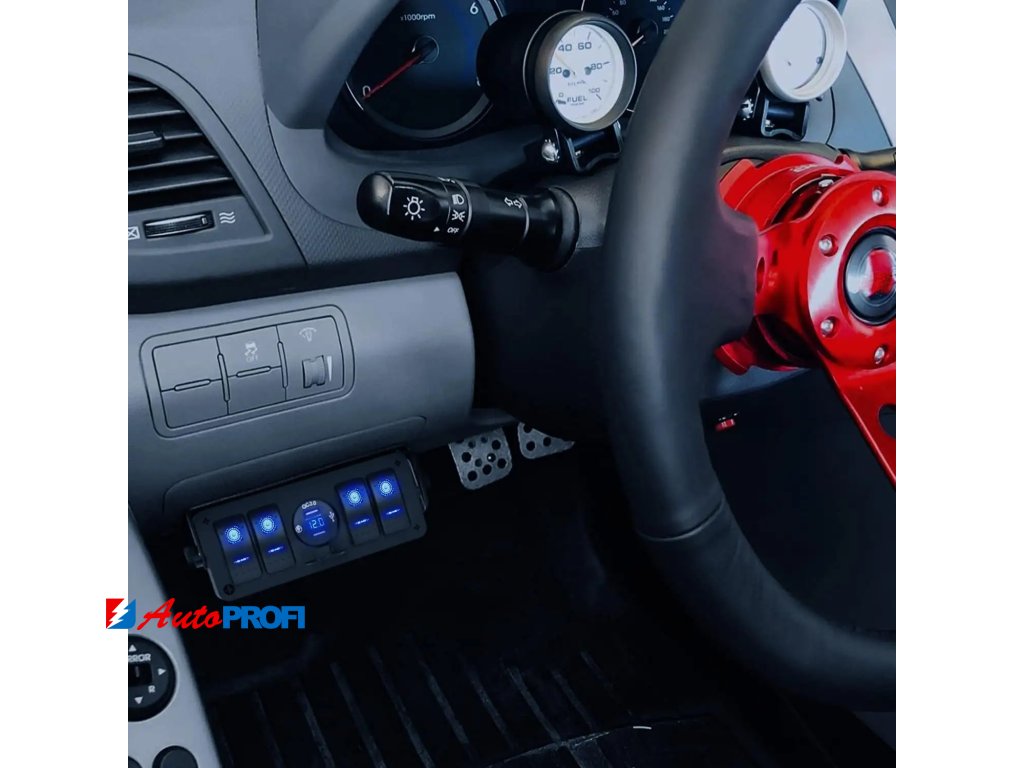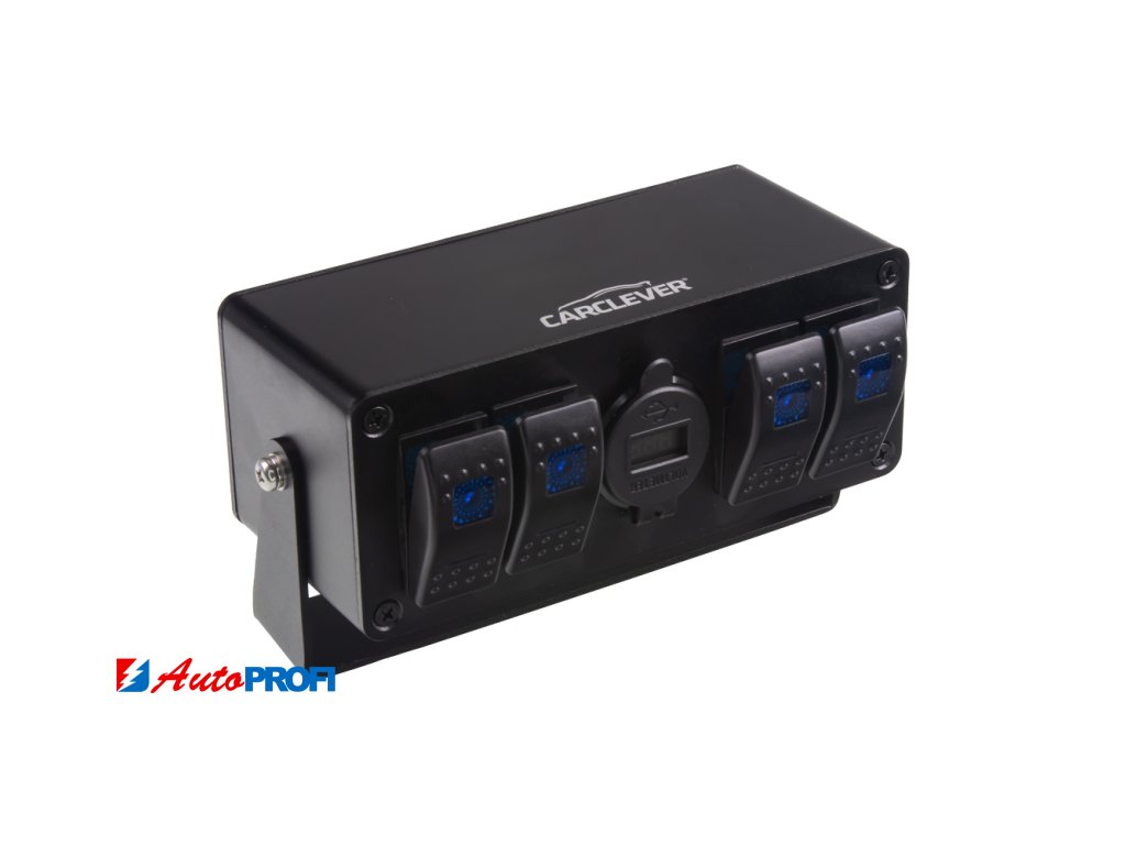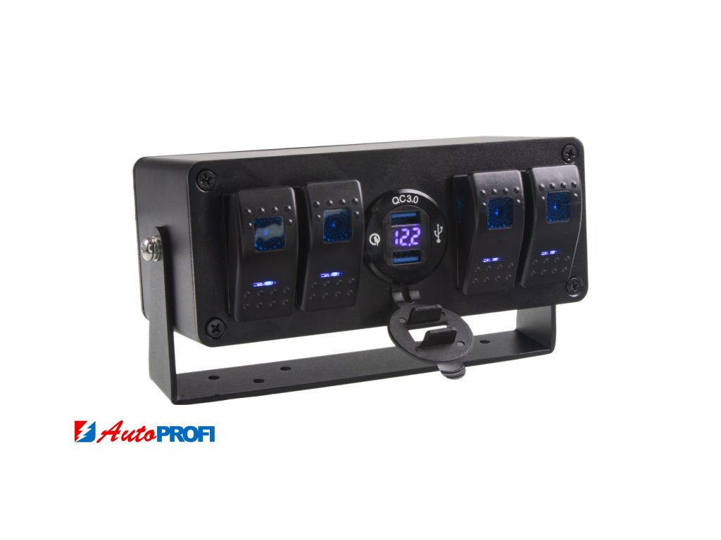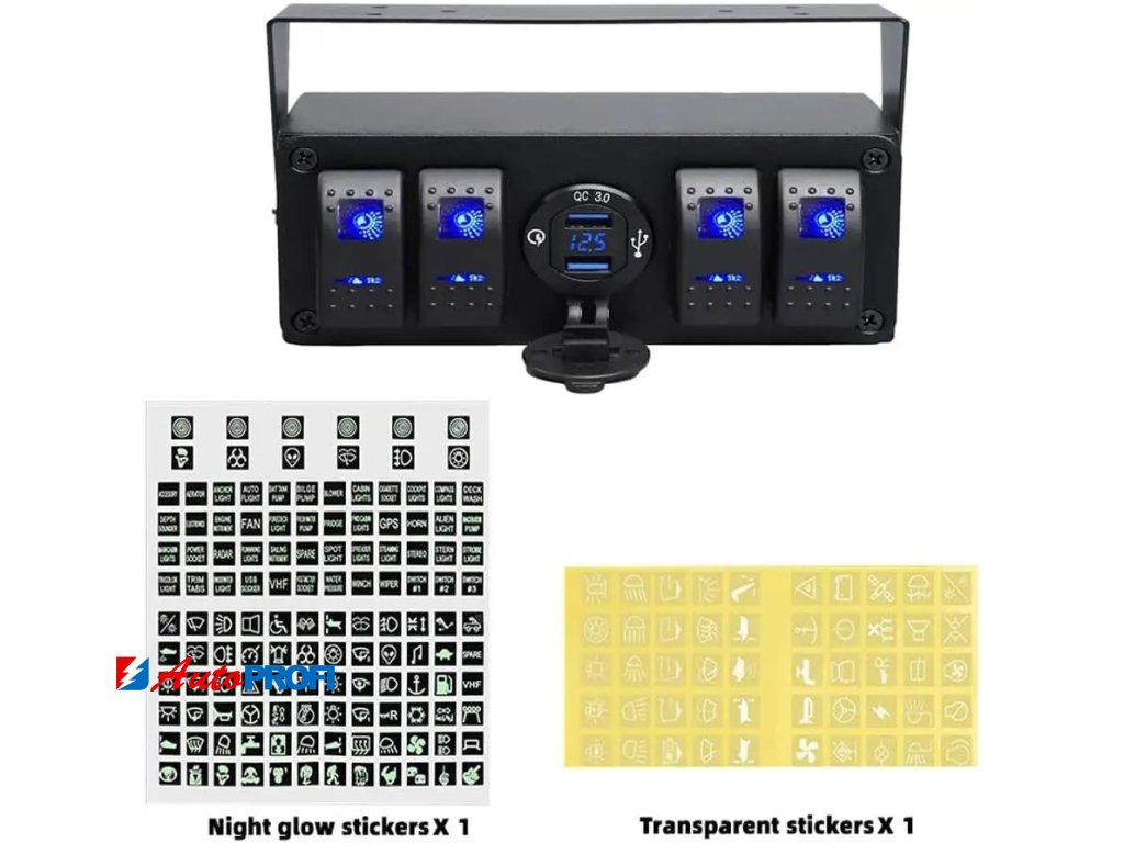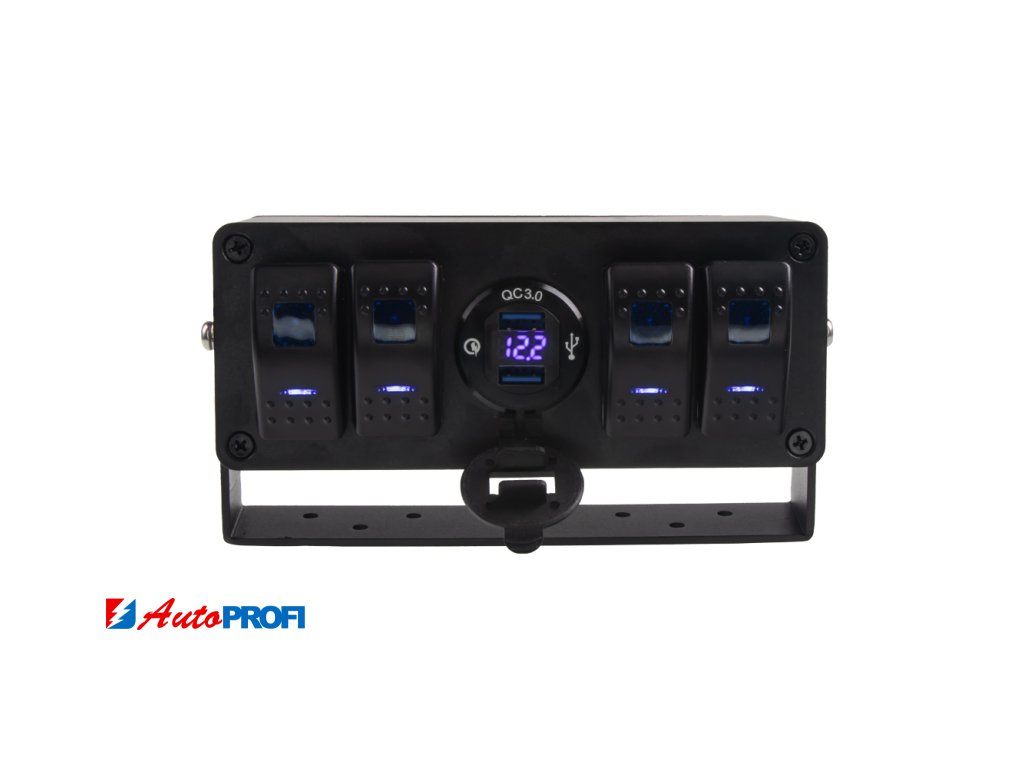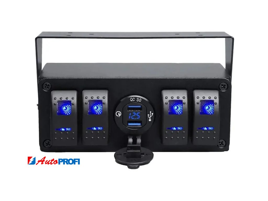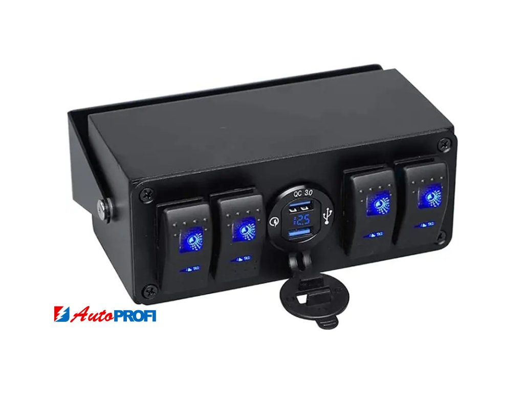 Panel (box) s 4x spínači Rocker a 2x USB zásuvkou s voltmetrem.