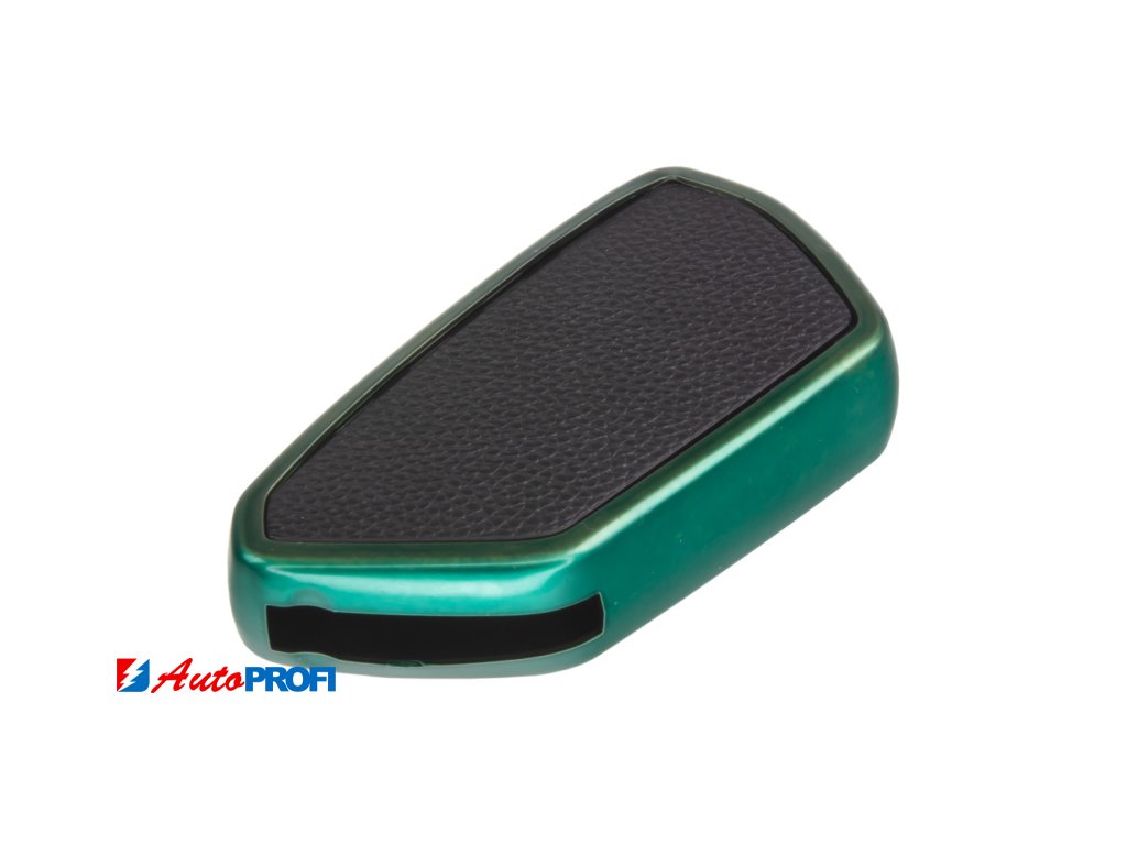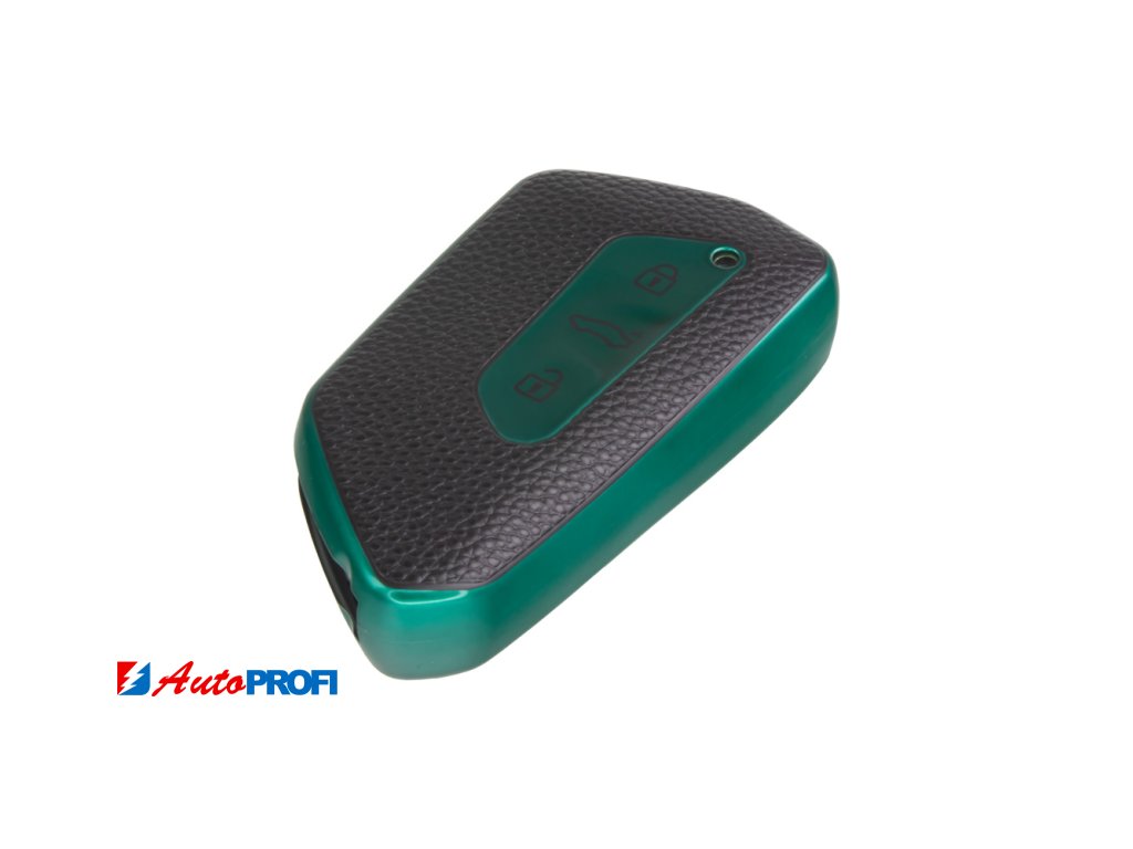 484VW127LG TPU obal pro klíč Škoda, VW, Seat, zelený-kůže