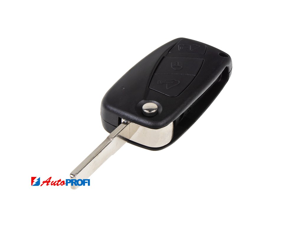 Náhradní obal vystřelovacího klíče pro vozy Fiat a Iveco s 3 tlačítkovým ovladačem (bez elektroniky a čipu imobilizéru). Do klíče je nutno vložit z původního klíče elektroniku dálkového ovládání a čip imobilizéru (transpondér), planžetu klíče je třeba nechat vyfrézovat podle tvaru originálního klíče.