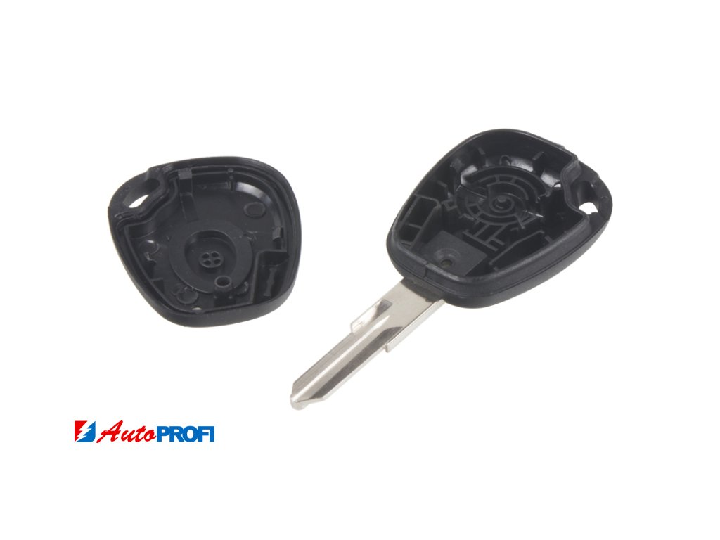 Náhradní obal klíče pro vozy Renault s 1-tlačítkovým ovladačem (bez elektroniky a čipu imobilizéru). Do klíče je nutno vložit z původního klíče elektroniku dálkového ovládání a čip imobilizéru (transpondér), planžetu klíče je třeba nechat vyfrézovat podle tvaru originálního klíče.