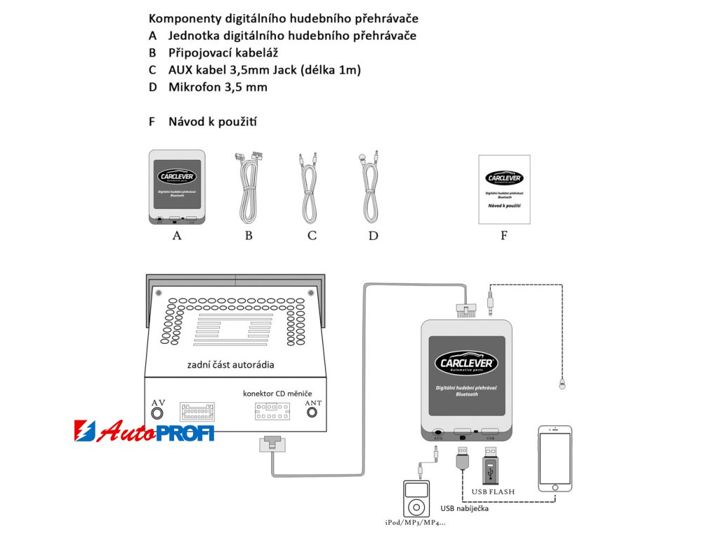 Adaptér je ideální alternativou originálního CD/DVD/USB přehrávače a hands free sady!