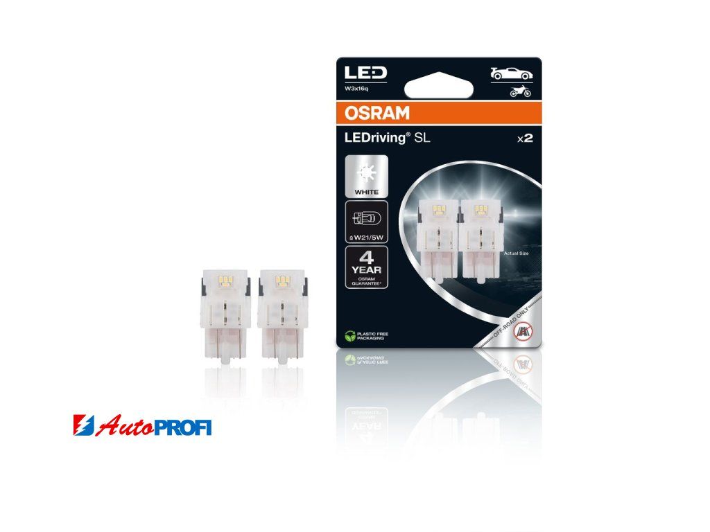 Náhradní žárovky LEDriving SL W21W/5W nabízejí moderní a intenzivní světlo s teplotou chromatičnosti až 6000 K.