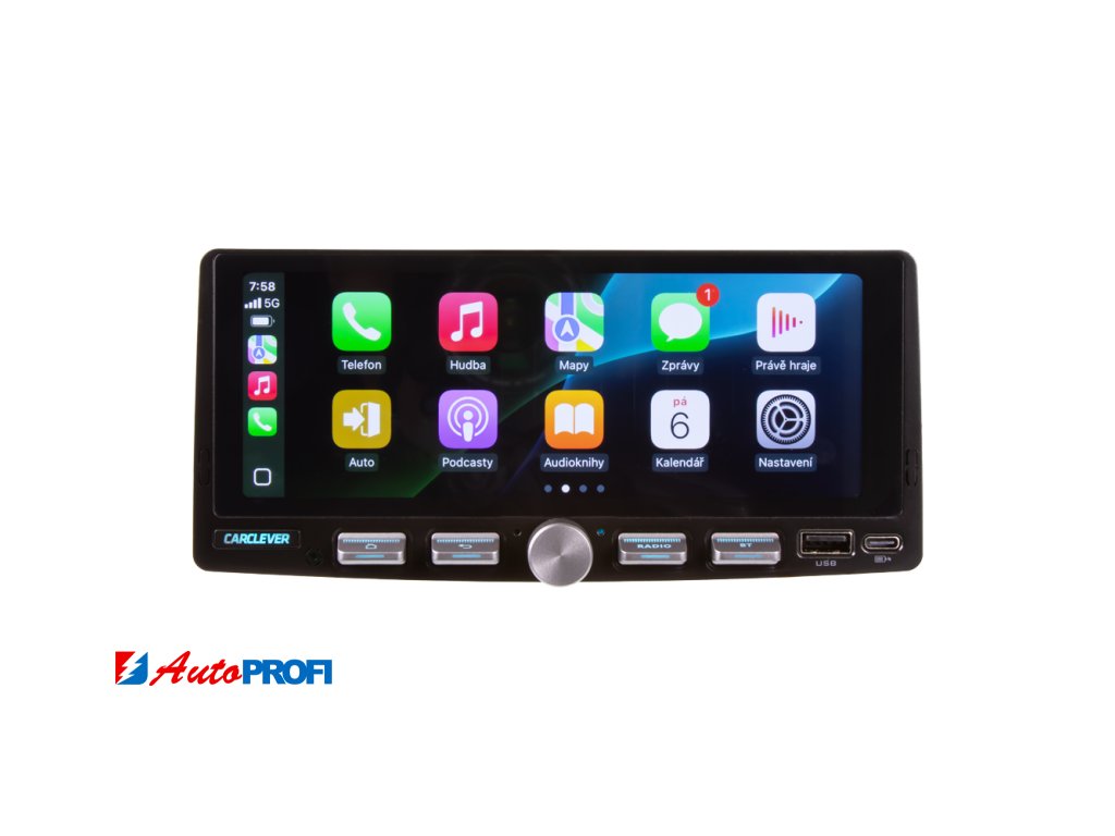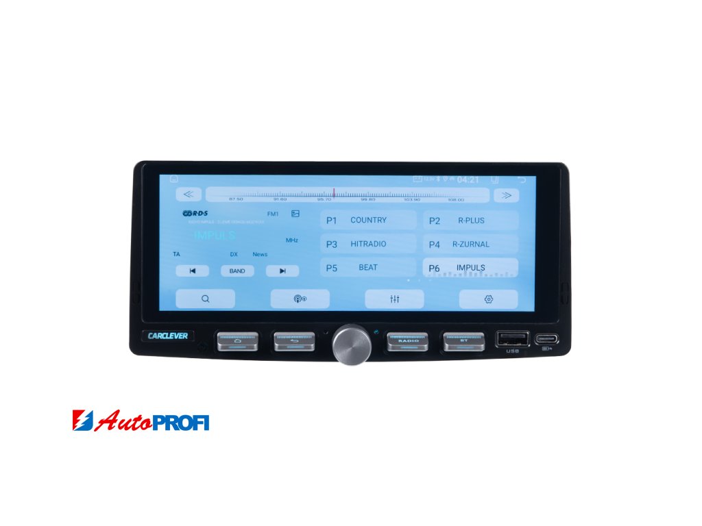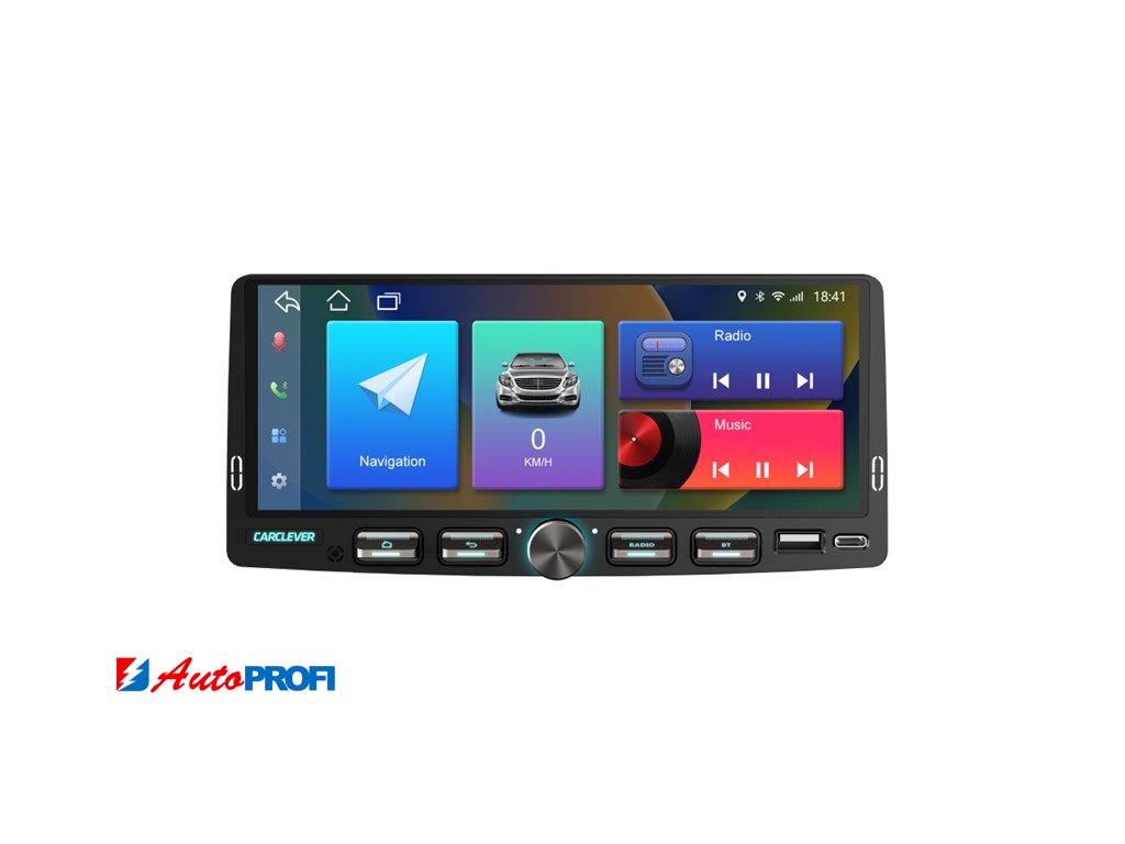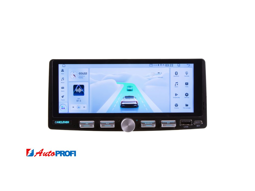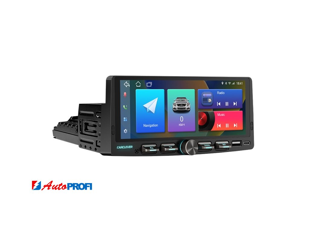 1DIN multimediální autorádio s operačním softwarem Android, Wi-Fi, GPS, Bluetooth, CarPlay / Android Auto.