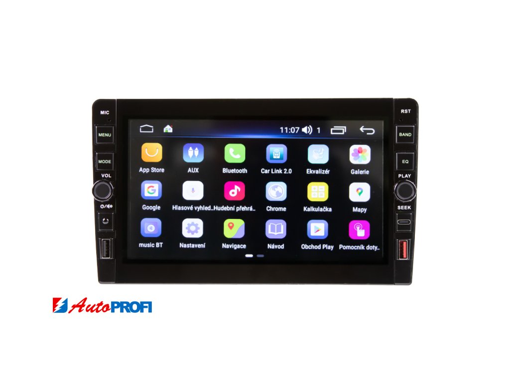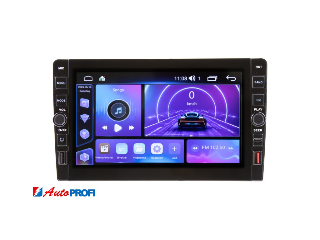 Multimediální autorádio s 8" IPS displejem, netradičním designem s operačním softwarem Android, Wi-Fi, GPS, Bluetooth, CarPlay, Mirror link, 4G.