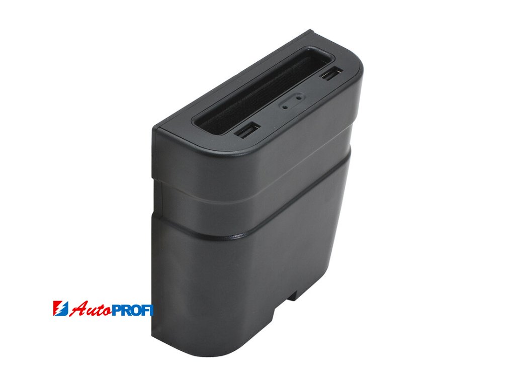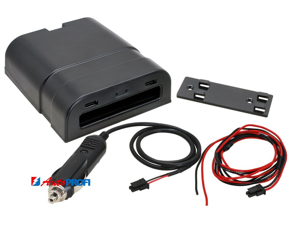 Kapsa je vybavena pružinovým mechanismem, který zajišťuje pevné uchycení telefonu během jízdy. Dvě malé LED kontrolky signalizují stav nabíjení telefonu. Kapsa má také dva porty USB, což vám dává možnost nabíjet další dvě zařízení.