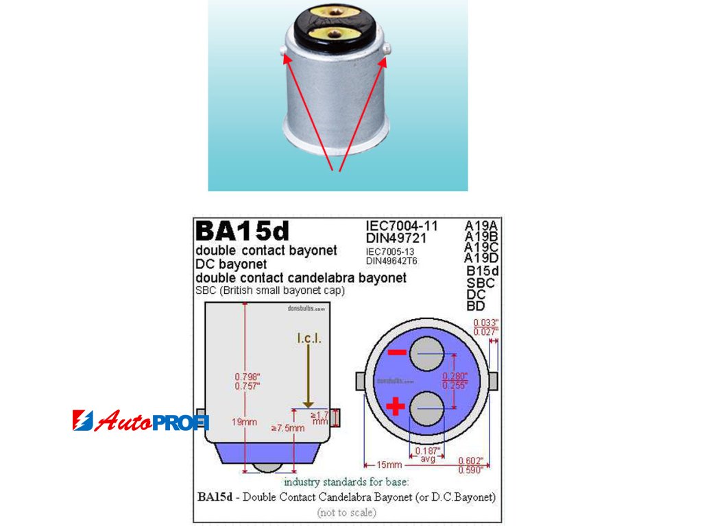 - žárovka je jednovláknová se speciálním zapojením plus a mínus na spodních kontaktech