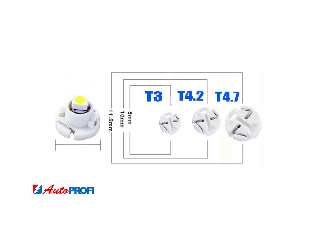 Náhradní LED žárovka s paticí T4,7 bílá, 2x SMD LED, napájecí napětí 12 V, použití např. do přístrojových desek.