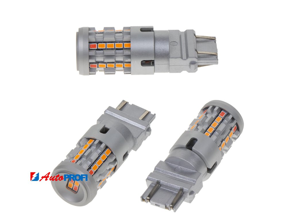 Nová generace A- CLASS LED autožárovek s paticí T20 (3157) (dvouvlákno), oranžová / červená.