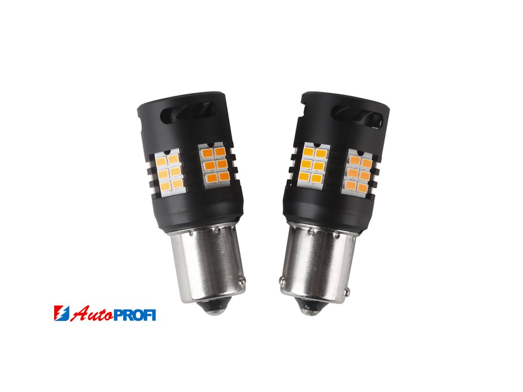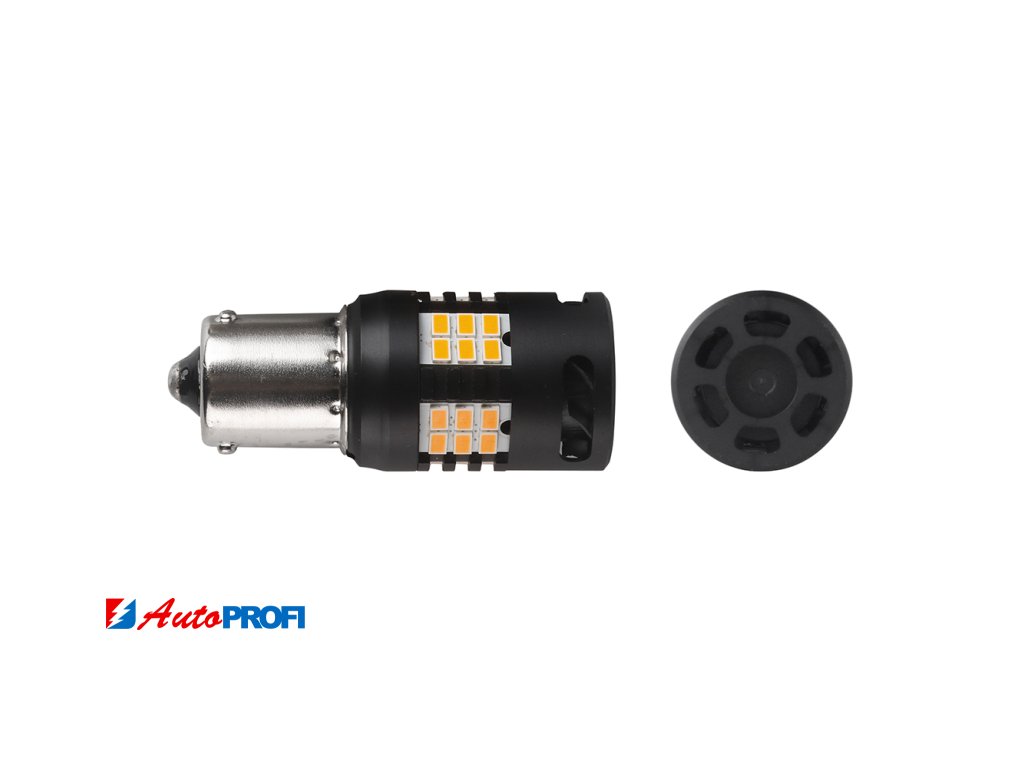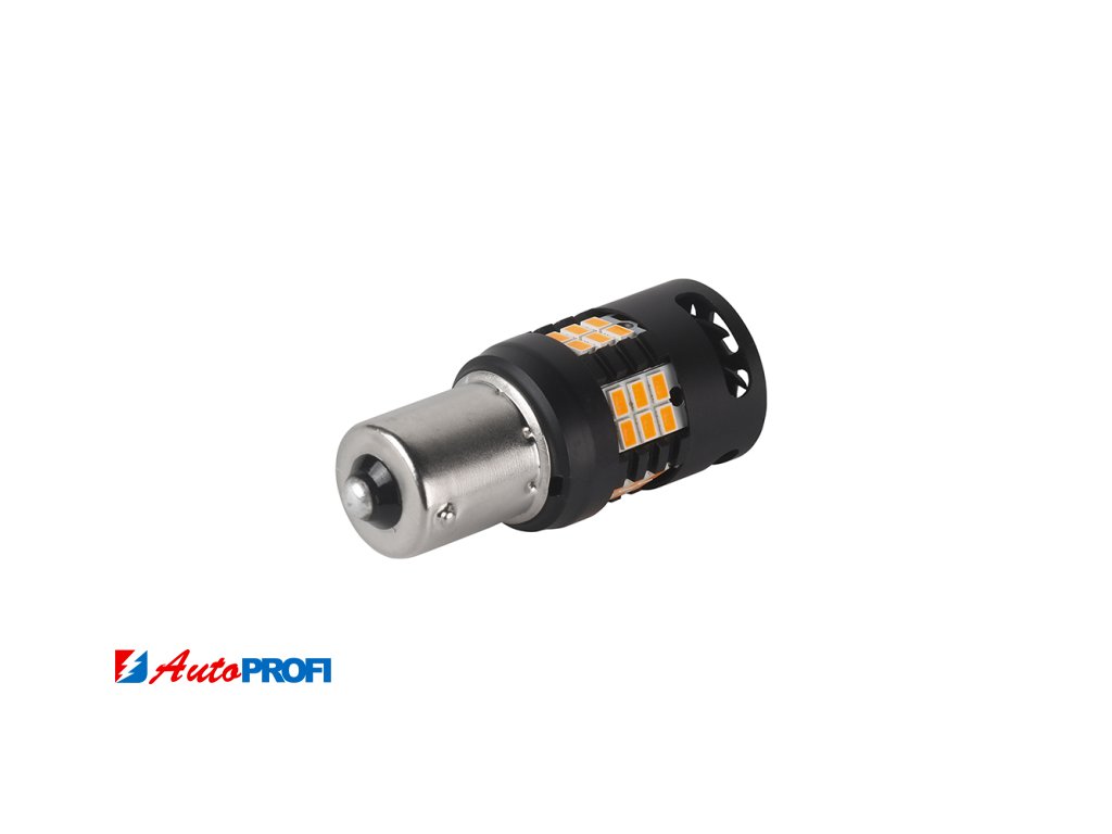 Nová generace BR LED autožárovek (high brightness) s aktivním chlazením a s paticí BAU15S, oranžová.