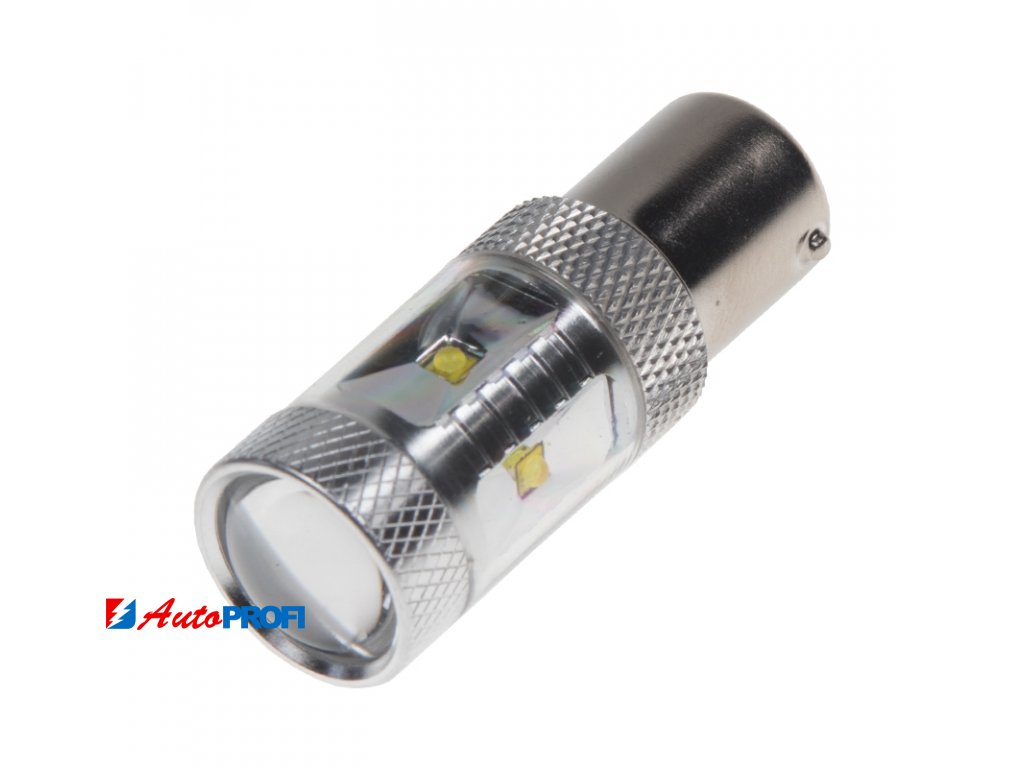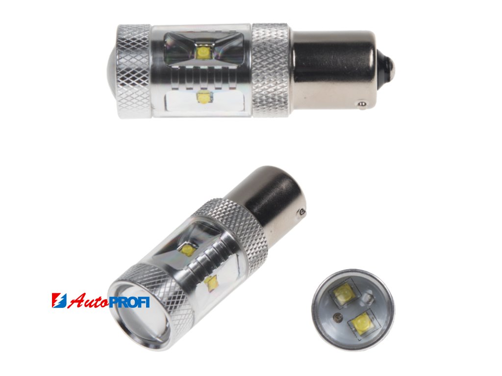 Nová generace LED autožárovek s paticí BA15S, bílá, 6 x super svítivý LED čip CREE XBD 5 W + rozptylová krycí čočka.