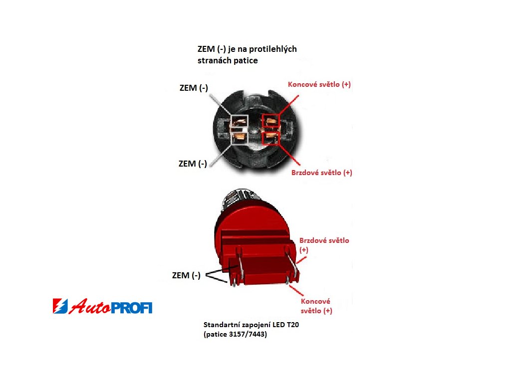 Upozornění: Dbejte prosím na správné zapojení patice ve vozidle (viz. přiložené foto). Při jiném zapojení patice může dojít k poškození (vypálení) žárovky a na takovéto poškození nebude bráno při reklamaci zřetel!
