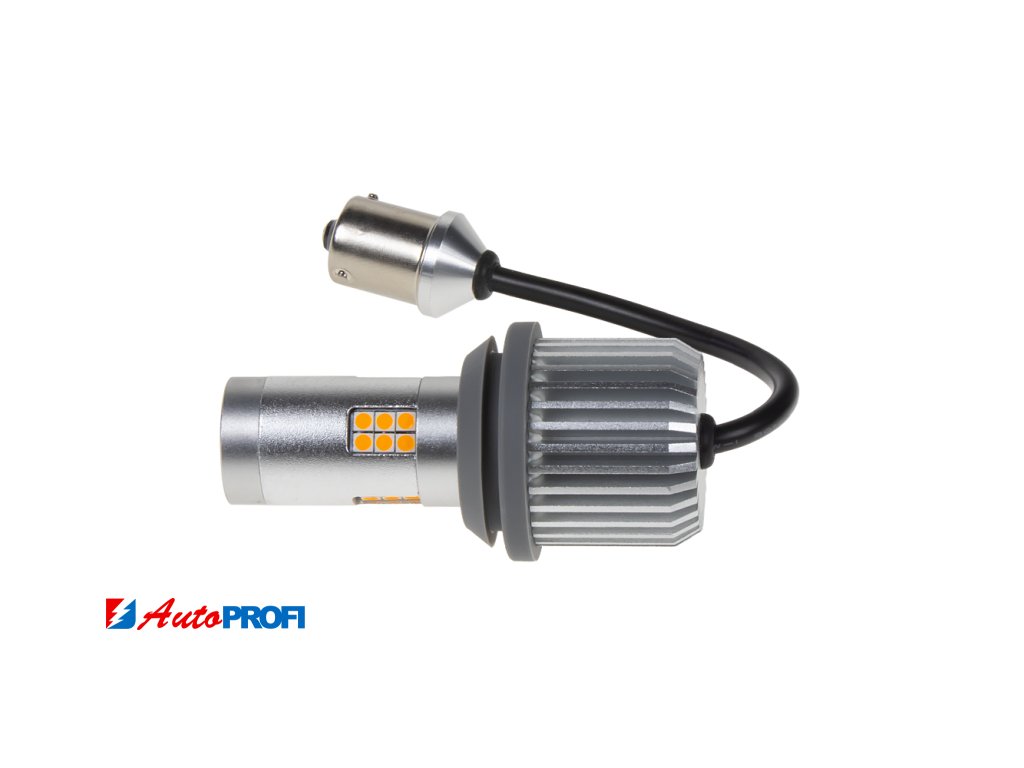 Nová generace LED autožárovek s paticí BAU15s, oranžová, 30x LED čip 3030SMD. Díky speciální vestavěné elektronice simuluje stejný odběr jako klasická žárovka a nehlásí chybu ve vozidlech se systémem hlídání prasklých žárovek. Určeno do směrových světel (blinkrů), žárovky blikají správnou rychlostí.