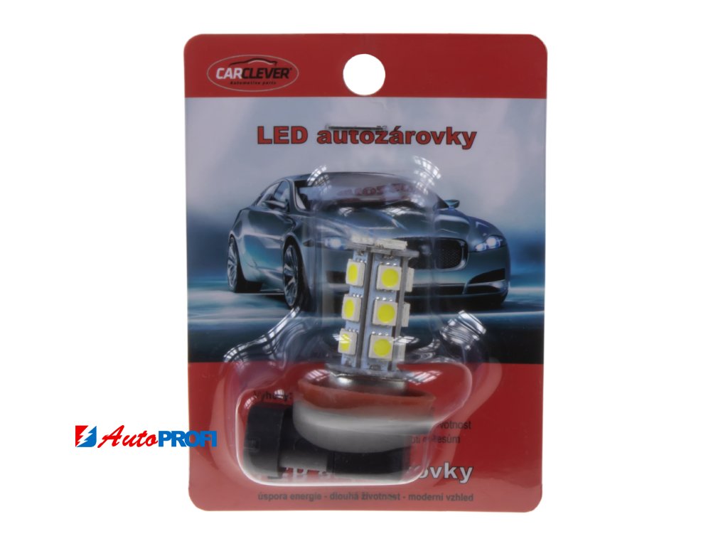 Náhradní LED žárovka s paticí H8 bílá, 18 x tříčipová SMD LED, napájecí napětí 12 V.