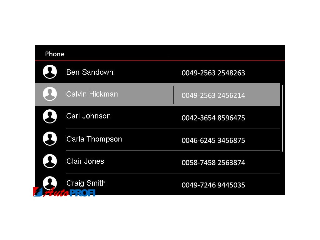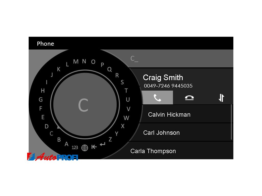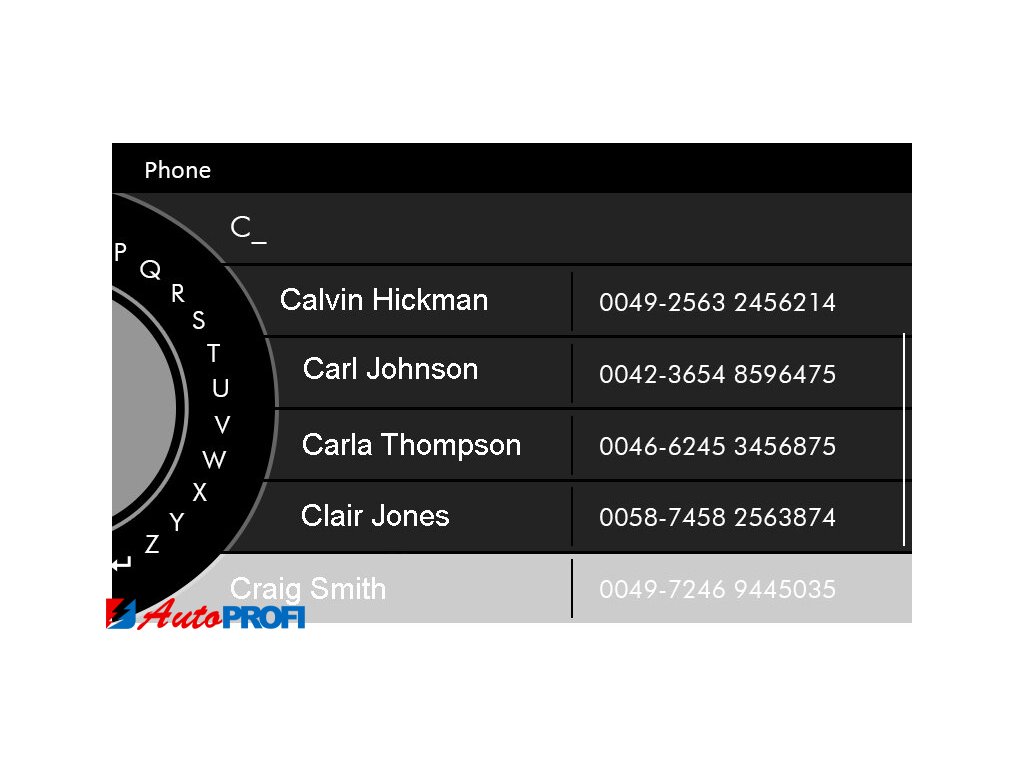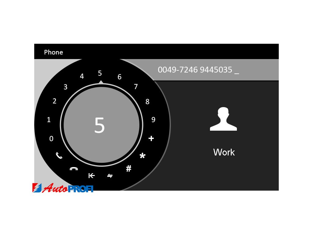 - umožňuje uživatelům volit z telefonního seznamu, prohlížet poslední hovory, oblíbené položky, hlasové vytáčení a také vytočit pomocí klávesnice na obrazovce.