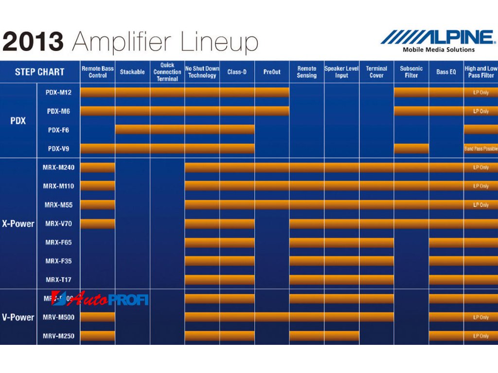 Alpine je přední značka v oblasti automobilového audia a elektroniky, známá svou inovací a vysokou kvalitou. Založena v roce 1967, Alpine se specializuje na vývoj a výrobu špičkových autorádií, zesilovačů, reproduktorů a multimediálních systémů, které poskytují vynikající zvukový výkon a moderní technologie. Produkty Alpine jsou navrženy tak, aby splňovaly náročné požadavky automobilových nadšenců a audiofilů, zajišťující maximální zážitek z jízdy. Značka je synonymem pro spolehlivost, preciznost a pokročilý design v automobilovém průmyslu.