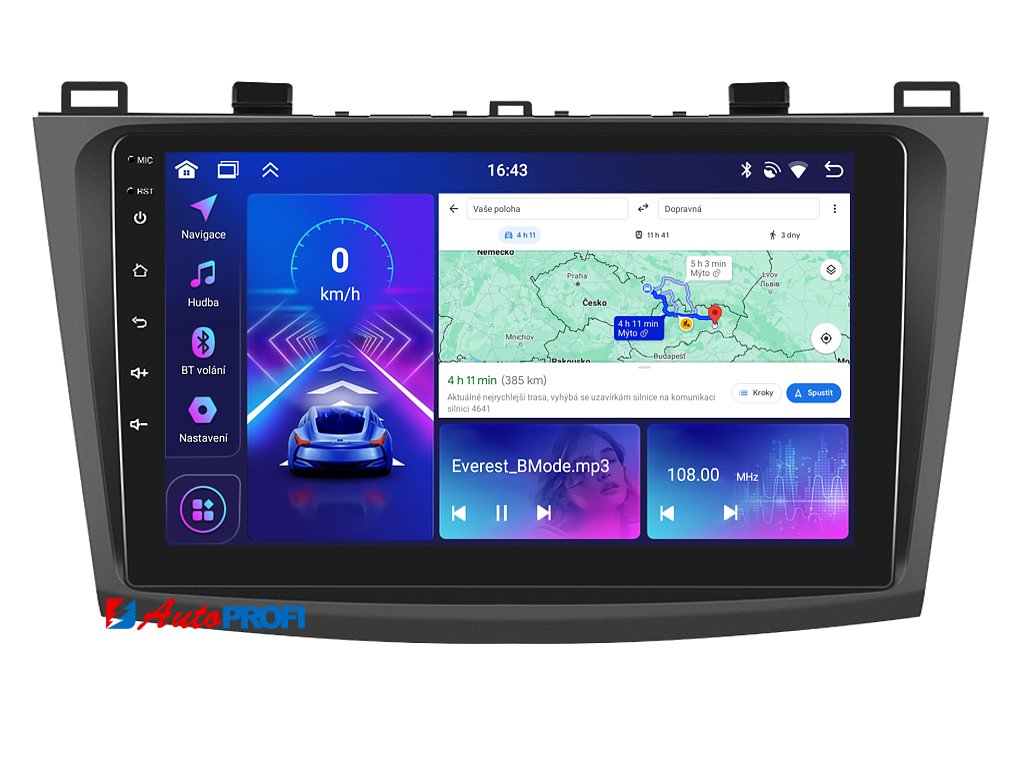 Zažijte každý okamžik ve vaší Mazda 3 s neuvěřitelným zvukem díky 2DIN autorádiu Bmode BEV30. Na první pohled upoutá moderní technologie CarPlay a AndroidAuto, které umožňují bezproblémové zrcadlení a ovládání telefonu na displeji autorádia. Jeho 9 palcová dotyková obrazovka zachycuje každý detail v HD rozlišení, což potěší spolucestující při cestování. Vysoký výkon zajistí čtyřjádrový procesor s podporou 4 GB RAM. Náročný posluchač jistě ocení funkci DSP neboli digitální signálový procesor, který násobně zvyšuje kvalitu reprodukce. Funkce Bluetooth umožní pohodlné a bezpečné handsfree volání a vyřizování důležitých hovorů. Pokud si občas nevíte rady se správnou cestou, můžete využít zabudovaného GPS modulu, který Vás přivede na tu správnou cestu. Pomocí Google obchodu si můžete stáhnout svou oblíbenou GPS navigaci. Operační systém Android 15 se postará o ovládání mnoha oblíbených aplikací. Pro bezpečné couvání můžete snadno propojit autorádio s parkovací kamerou. Autorádio nabízí možnost výběru z různých jazyků, které obsahují přeloženou základní část systému do českého jazyka.