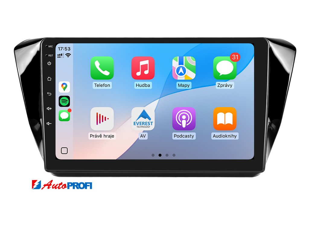 S 2DIN autorádiem Isudar T72-IEV42 QLED pro Škoda Superb III máte svět hudby, zábavy a informací doslova na dosah ruky. Hlavním rysem je bezesporu přehledná 10,1 palcová QLED obrazovka s neuvěřitelným rozlišením 1280 x 720. Lze na ní sledovat video i prohlížet fotografie s podporou Android aplikacemi. O špičkový výkon a plynulý běh aplikací se stará 8-jádrový procesor ve spolupráci se 8 GB RAM. Náročný posluchač jistě ocení funkci DSP neboli digitální signálový procesor, který násobně zvyšuje kvalitu reprodukce. Za pomocí 4G modulu se z Vašeho autorádia stane smartphone, ze kterého můžete hravě odesílat SMS zprávy, využívat online GPS navigaci s aktuální dopravní situací či využívat další cenné funkce. Váš mobilní telefon již zůstane navždy v kapse díky funkci CarPlay a Android Auto. Díky operačnímu systému Android 12 budete mít ve svém automobilu kompletní multimediální centrum přeplněné funkcemi a aplikacemi. Pohled z parkovací kamery Vám umožní bezpečné a ničím nerušené couvání. Autorádio nabízí možnost výběru z různých jazyků, které obsahují přeloženou základní část systému do českého jazyka.