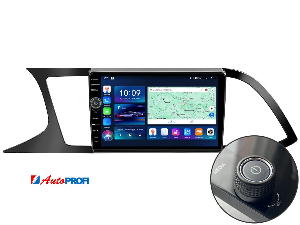 2DIN autorádio Everest EVE56 pro Seat Leon III nastavuje nové standardy ve světě multimediálních technologií. Na první pohled zaujme svou 9 palcovou QLED obrazovkou s neuvěřitelným rozlišením 1280 x 800. Lze na ní sledovat video i prohlížet fotografie s podporou Android aplikacemi. O špičkový výkon a plynulý běh aplikací se stará stabilní software s 8-jádrovým procesorem ve spolupráci se 6 GB RAM. Náročný posluchač jistě ocení funkci DSP neboli digitální signálový procesor, který násobně zvyšuje kvalitu reprodukce. Za pomocí 4G modulu se z Vašeho autorádia stane smartphone, ze kterého můžete hravě odesílat SMS zprávy, využívat online GPS navigaci s aktuální dopravní situací či využívat další cenné funkce. Váš mobilní telefon již zůstane navždy v kapse díky bezdrátové funkci CarPlay a Android Auto. Díky operačnímu systému Android 15 budete mít ve svém automobilu kompletní multimediální centrum přeplněné funkcemi a aplikacemi. Pohled z parkovací kamery Vám umožní bezpečné a ničím nerušené couvání. Autorádio nabízí možnost výběru z různých jazyků, které obsahují přeloženou základní část systému do českého jazyka.