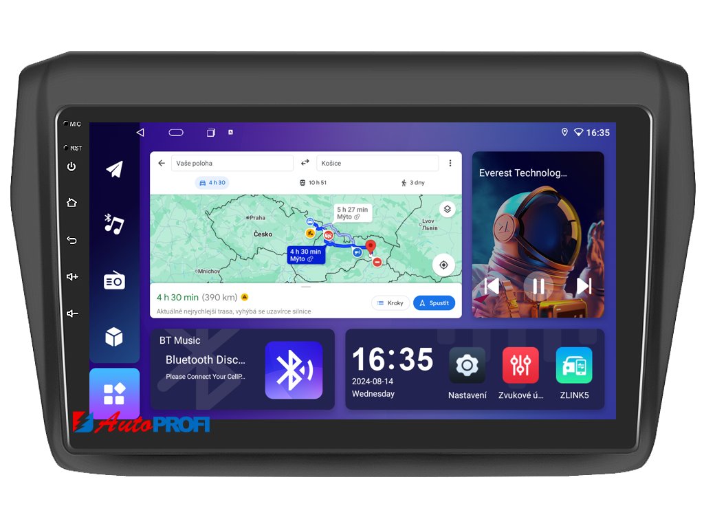 Autorádio Isudar T68B-IEV67 pro Suzuki Swift III (Gen 5) Vás dostane do nové úrovně zážitku s hudbou, zábavou a informacemi. Hlavním rysem je bezesporu přehledná 9 palcová QLED obrazovka s neuvěřitelným rozlišením 1280 x 720. Lze na ní sledovat video i prohlížet fotografie s podporou Android aplikacemi. O špičkový výkon a plynulý běh aplikací se stará 8-jádrový procesor ve spolupráci se 6 GB RAM. Náročný posluchač jistě ocení funkci DSP neboli digitální signálový procesor, který násobně zvyšuje kvalitu reprodukce. Za pomocí 4G modulu se z Vašeho autorádia stane smartphone, ze kterého můžete hravě odesílat SMS zprávy, využívat online GPS navigaci s aktuální dopravní situací či využívat další cenné funkce. Váš mobilní telefon již zůstane navždy v kapse díky funkci CarPlay a Android Auto. Díky operačnímu systému Android 14 budete mít ve svém automobilu kompletní multimediální centrum přeplněné funkcemi a aplikacemi. Pohled z parkovací kamery Vám umožní bezpečné a ničím nerušené couvání. Autorádio nabízí možnost výběru z různých jazyků, které obsahují přeloženou základní část systému do českého jazyka.