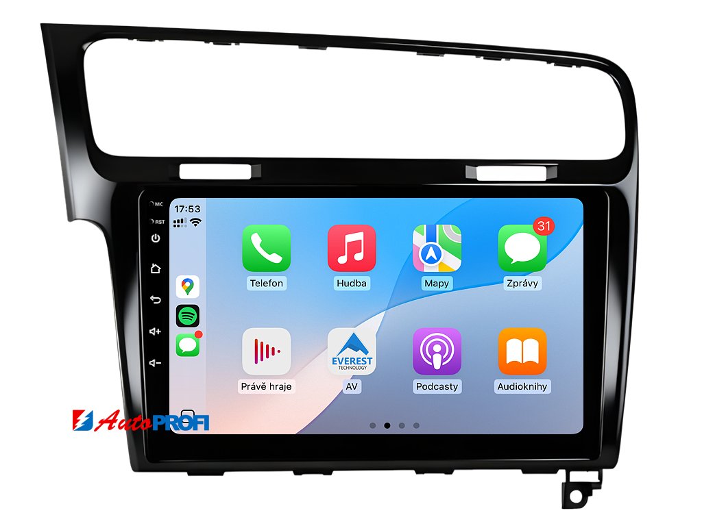 S 2DIN autorádiem Isudar T72-IEV134 QLED pro Volkswagen Golf VII máte svět hudby, zábavy a informací doslova na dosah ruky. Hlavním rysem je bezesporu přehledná 10,1 palcová QLED obrazovka s neuvěřitelným rozlišením 1280 x 720. Lze na ní sledovat video i prohlížet fotografie s podporou Android aplikacemi. O špičkový výkon a plynulý běh aplikací se stará 8-jádrový procesor ve spolupráci se 4 GB RAM. Náročný posluchač jistě ocení funkci DSP neboli digitální signálový procesor, který násobně zvyšuje kvalitu reprodukce. Za pomocí 4G modulu se z Vašeho autorádia stane smartphone, ze kterého můžete hravě odesílat SMS zprávy, využívat online GPS navigaci s aktuální dopravní situací či využívat další cenné funkce. Váš mobilní telefon již zůstane navždy v kapse díky funkci CarPlay a Android Auto. Díky operačnímu systému Android 12 budete mít ve svém automobilu kompletní multimediální centrum přeplněné funkcemi a aplikacemi. Pohled z parkovací kamery Vám umožní bezpečné a ničím nerušené couvání. Autorádio nabízí možnost výběru z různých jazyků, které obsahují přeloženou základní část systému do českého jazyka.
