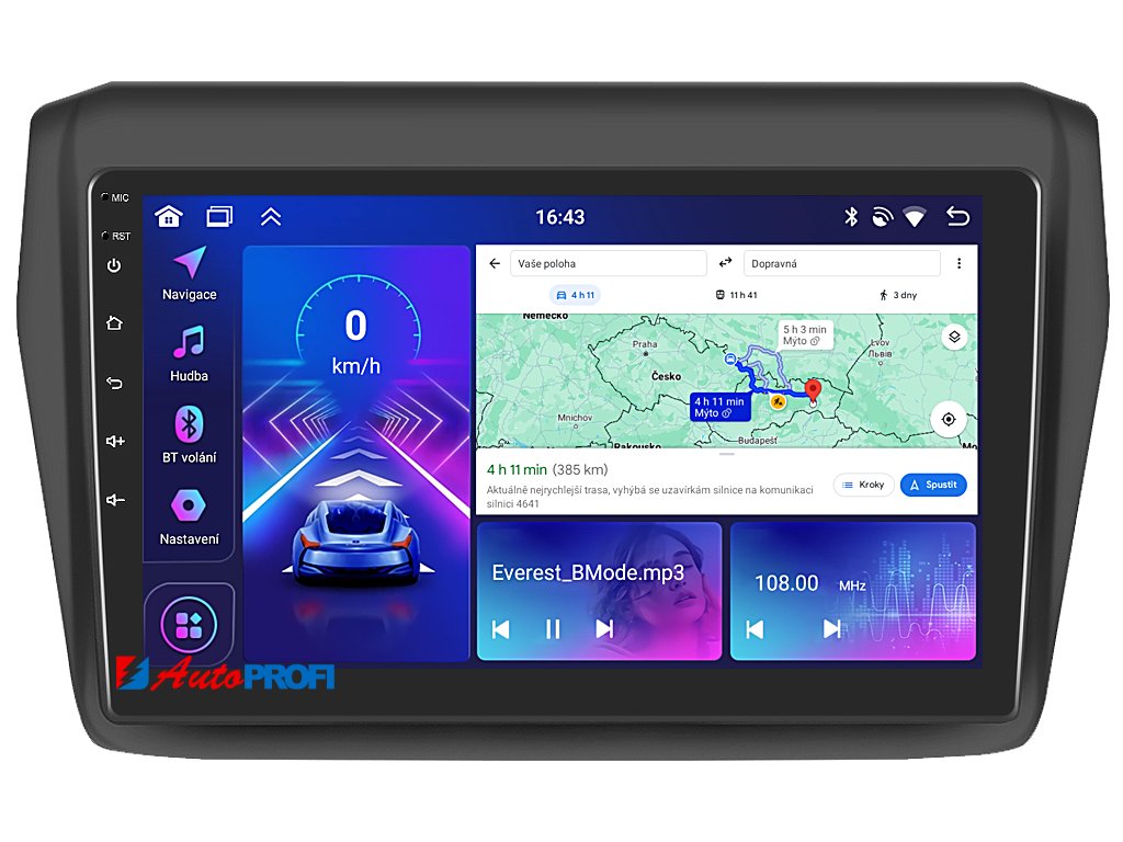 Zažijte každý okamžik ve vašem Suzuki Swift III (Gen 5) s neuvěřitelným zvukem díky 2DIN autorádiu Bmode BEX67. Na první pohled upoutá moderní technologie CarPlay a AndroidAuto, které umožňují bezproblémové zrcadlení a ovládání telefonu na displeji autorádia. Jeho 9 palcová dotyková obrazovka zachycuje každý detail v HD rozlišení, což potěší spolucestující při cestování. Vysoký výkon zajistí osmijádrový procesor s podporou 6 GB RAM. Náročný posluchač jistě ocení funkci DSP neboli digitální signálový procesor, který násobně zvyšuje kvalitu reprodukce. Funkce Bluetooth umožní pohodlné a bezpečné handsfree volání a vyřizování důležitých hovorů. Pokud si občas nevíte rady se správnou cestou, můžete využít zabudovaného GPS modulu, který Vás přivede na tu správnou cestu. Pomocí Google obchodu si můžete stáhnout svou oblíbenou GPS navigaci. Operační systém Android 15 se postará o ovládání mnoha oblíbených aplikací. Pro bezpečné couvání můžete snadno propojit autorádio s parkovací kamerou. Autorádio nabízí možnost výběru z různých jazyků, které obsahují přeloženou základní část systému do českého jazyka.