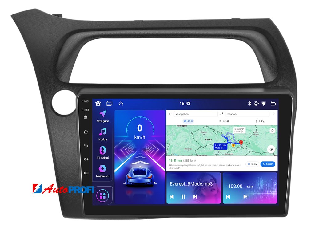 Zažijte každý okamžik ve vašem Honda Civic 8G s neuvěřitelným zvukem díky 2DIN autorádiu Bmode BEX53. Na první pohled upoutá moderní technologie CarPlay a AndroidAuto, které umožňují bezproblémové zrcadlení a ovládání telefonu na displeji autorádia. Jeho 9 palcová dotyková obrazovka zachycuje každý detail v HD rozlišení, což potěší spolucestující při cestování. Vysoký výkon zajistí osmijádrový procesor s podporou 6 GB RAM. Náročný posluchač jistě ocení funkci DSP neboli digitální signálový procesor, který násobně zvyšuje kvalitu reprodukce. Funkce Bluetooth umožní pohodlné a bezpečné handsfree volání a vyřizování důležitých hovorů. Pokud si občas nevíte rady se správnou cestou, můžete využít zabudovaného GPS modulu, který Vás přivede na tu správnou cestu. Pomocí Google obchodu si můžete stáhnout svou oblíbenou GPS navigaci. Operační systém Android 15 se postará o ovládání mnoha oblíbených aplikací. Pro bezpečné couvání můžete snadno propojit autorádio s parkovací kamerou. Autorádio nabízí možnost výběru z různých jazyků, které obsahují přeloženou základní část systému do českého jazyka.