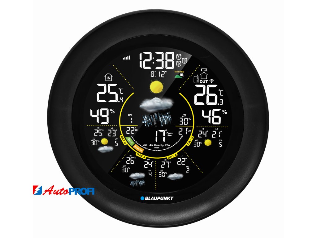 BLAUPUNKT WS65BK APP je moderní meteostanice, která kombinuje sledování meteorologických podmínek s kontrolou kvality vzduchu. Elegantní kulaté tělo v černé barvě spolu s barevným LCD displejem poskytuje přehledné a stylové řešení pro každou domácnost.