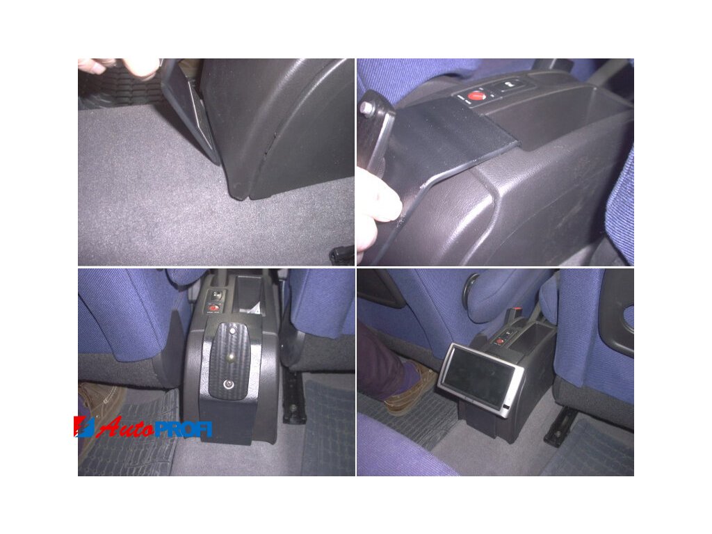 PEUGEOT 307 SW (02-05). Konzole vhodná pro umístění monitoru, na středový panel mezi sedadlo řidiče a spolujezdce, pro sledování ze zadních sedadel. Provedení které nebrání posunu ani náklonu sedadel. Umístění do interiéru bez vrtání. Vhodné pro většinu typy monitorů s uchycením do zadní vertikální drážky.